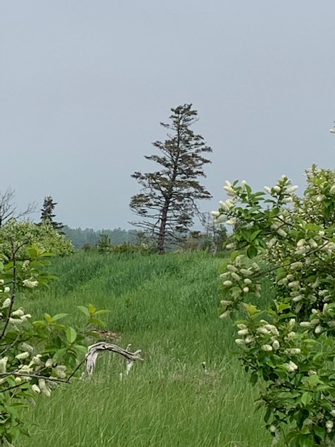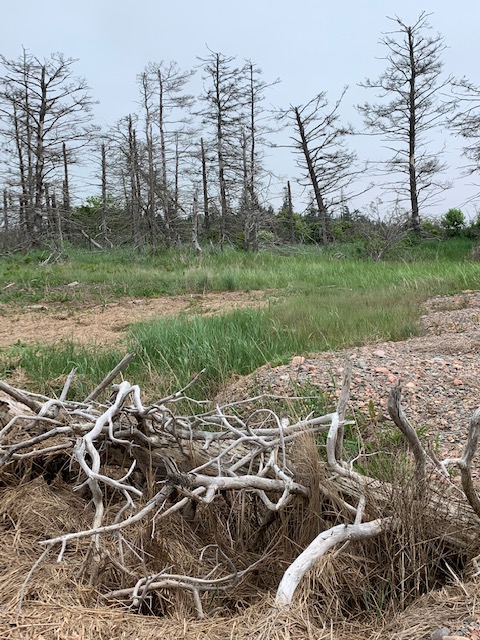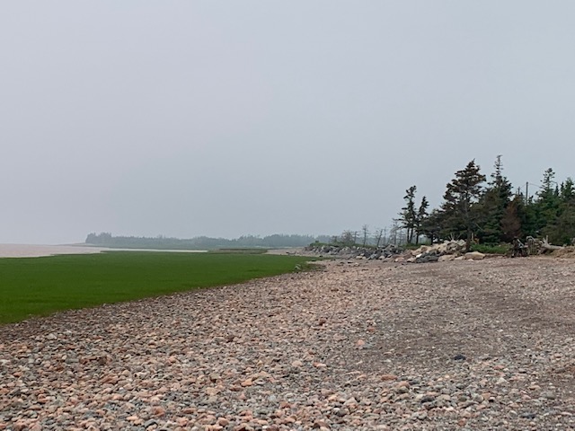 We climbed over the little berm separating Cottage Lane and the turn-around where we parked the car. We literally exhaled in unison and with that a sound of delight escaped into the wind! How different this stretch of beach was to any of the others we had explored previously. The lush green expanse of grass before us was steadily swallowed by the sandy waters of the approaching tide.