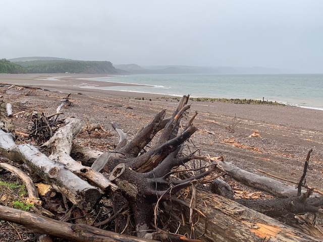 Our ultimate destination was Driftwood Beach in Advocate. Isle Haute, my favourite landmark, was shrouded in the mist and the ever-present wind was driving the rain along the beach. It wasn’t “sideways rain”, thank goodness but the chill in the air was reminiscent of the cooler seasons. We took a little time to appreciate the limited view…