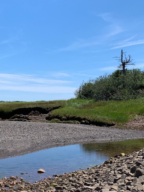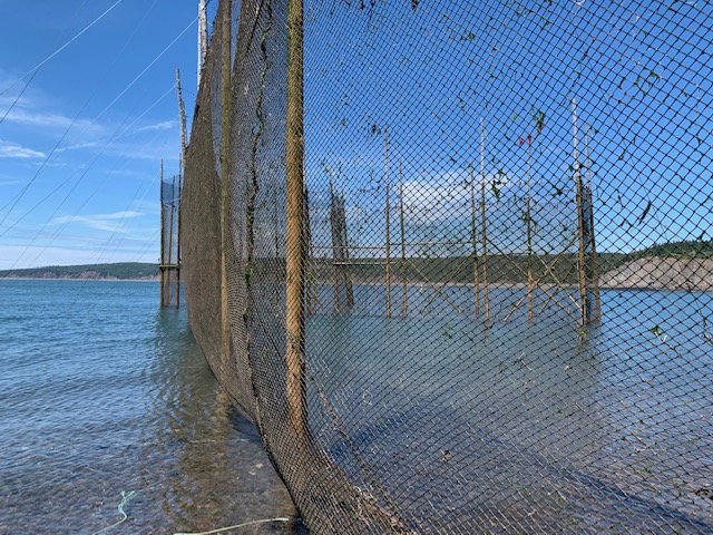 It was a glorious day with sunshine, blue skies and just enough clouds to make the sky more interesting. By the time the tide reaches its highest point the nets will be submerged. It’s always difficult to imagine and impossible to photograph as the marsh I crossed will also be under water. Here is a little more info on how weir fishing works.