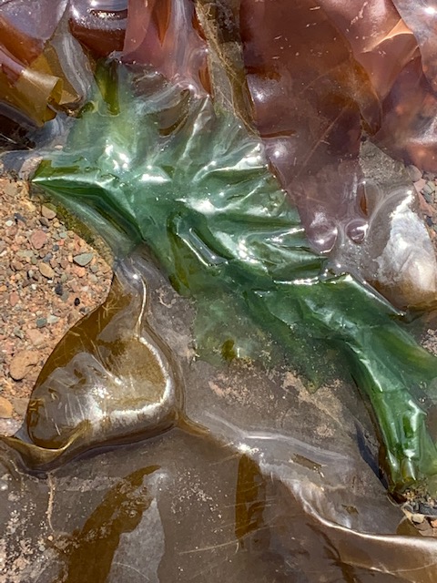 I was struck once again by the inspiring compositions created by Mother Nature. Kelp, dulse and sea lettuce always remind me of abstract paintings where paint remains wet and shiny.