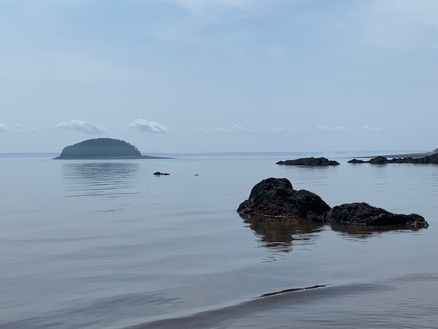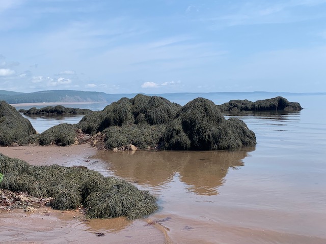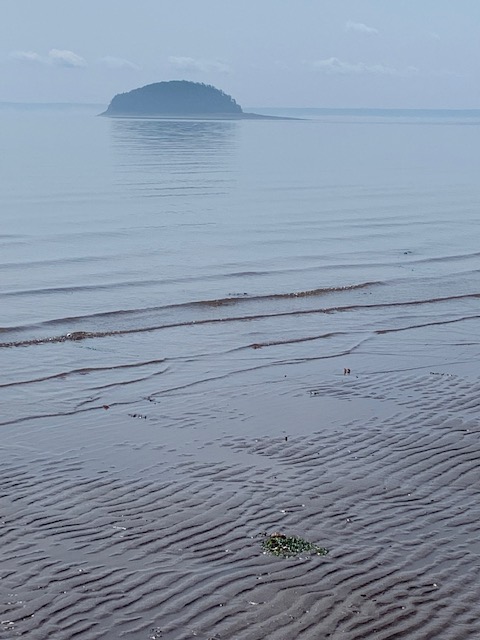 Spencer’s Island Beach is the first beach we ever visited after mandatory isolation when we first moved to Nova Scotia. The beach always brings back a strong positive emotional response. I realized that I have now visited this place during all seasons. Yet, never before have I experienced a low tide where I was able to wade out in the sandy area to witness sand dollars partially submerged in a protective layer of sand and covered by the warm waters of the Bay of Fundy.