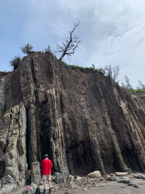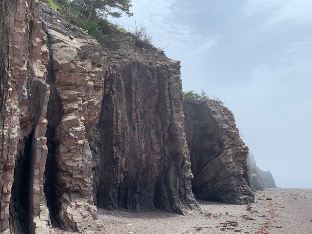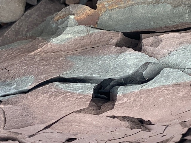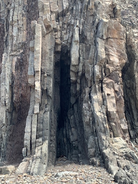 Thanks for your comment, Judith. To answer your question: No, there are no caves beyond the split openings. These openings are very narrow and not very deep. I hesitate to explore them up close as the formations are constantly changing due to erosion and many of the rock formations do not appear to be very stable. The Fundy GeoPark rule is to admire the formations from a distance of “two school buses”. I don’t always stick to that but when you hear loose rocks sliding down the steep slopes it is a good reminder to pay close attention.