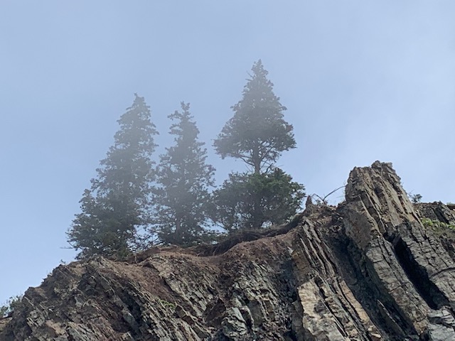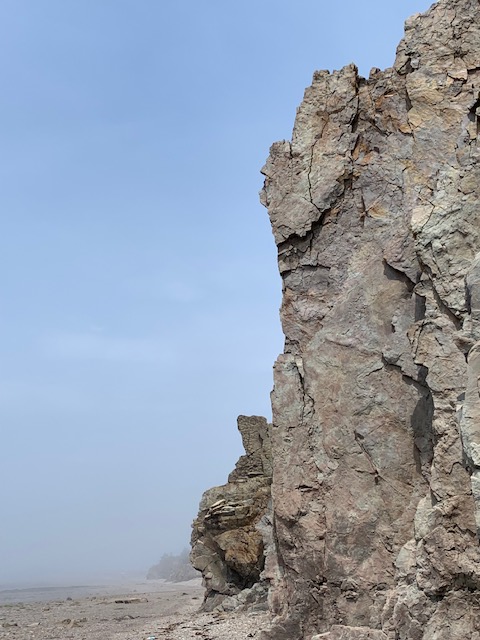 The extensive slideshow I am sharing with you today is from a recent beach walk located between West Beach and Diligent River. The beach is rocky and not easy to navigate. Sturdy hiking boots made the roughly 8 km round-trip hike manageable. The geological formations at our end destination, at times shrouded in mysterious mist, requires no wordy descriptions. The slideshow photo essay is self-explanatory.