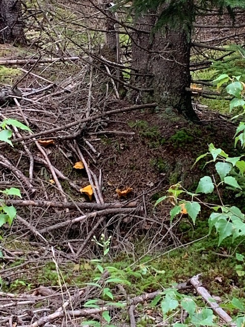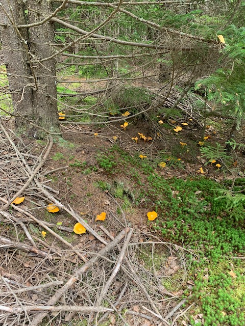Our previous spot did not disappoint. All around the area Chanterelles were “glowing” and we soon filled one basket with pure deliciousness!