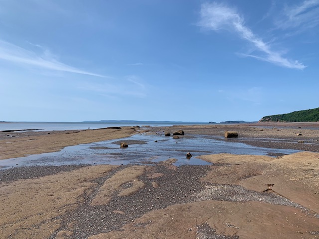 The ancient sea bed comprised of sandstone was created by the sheer power and weight of the last ice age. Walking on these outcroppings is a humbling experience. The air was still, the tide not quite at its lowest point. The sound of a distant ATV travelling along the red cliffs drowned out the laughter of the seagulls hunting for tasty morsels left behind by the receding tide. Soon the wind and sea bird sounds was all we heard.