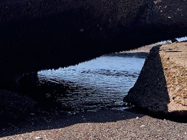 My proclivity to seek details on the ocean floor soon drew my attention to this section in the sandstone. Like a painting Mother Nature was presenting a moment in time with a beautifully balanced composition using tiny snails and dried sea lettuce. Colour, line quality and subtle textural nuances made me stop and take a closer look with the understanding that the next high tide will completely alter this presentation.