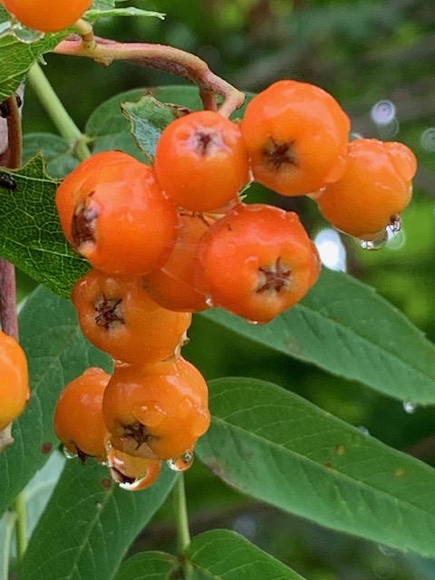 After the rain stopped it was time for a walk to stretch my legs. I realized I had not taken many pictures while exploring the town we call home. Let me make up for this today! I love the time after a good rain, everything appears so lush and clean and finding the occasional raindrop suspended from a berry is a bonus!