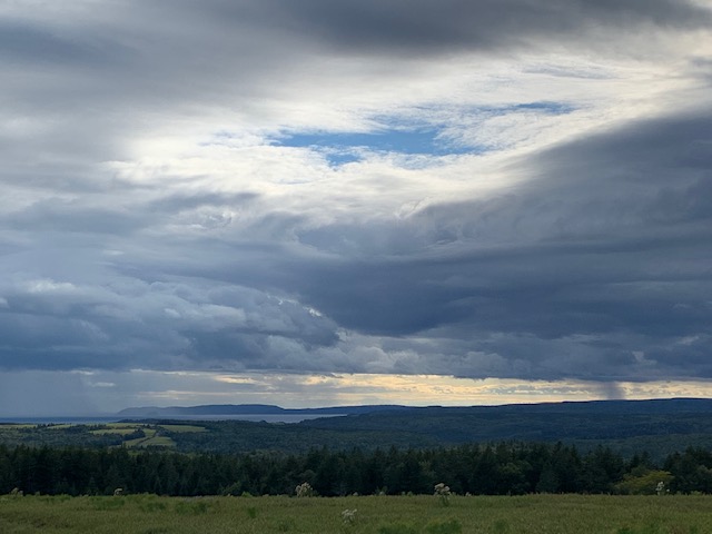 We moved to Nova Scotia from Saskatchewan which displays “Land of the Living Skies” on its license plates. “Canada’s Ocean Playground” has vivid skies and impressive vistas wherever I look! I can’t wait to do this drive again soon and check for fall colours and impressive clouds.
