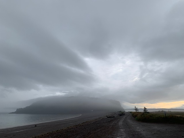 The waves were lapping at the shore and perhaps it was my imagination, but the sounds were muffled with the heavy mist shrouding the magnificent landmarks. I decided to take the time and hurried down the path to the beach to get a better look.