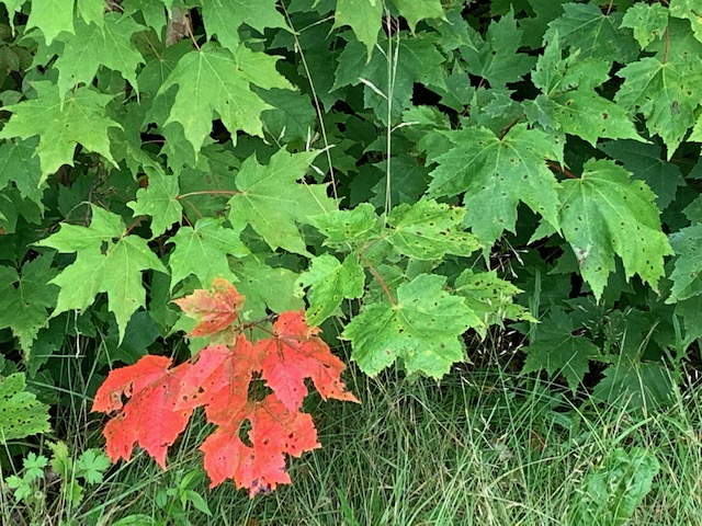 Red apples, ripe rose hips and plump beach plums against green leaves are a strong reminder that we are moving into fall with breakneck speed. I have a feeling that the colours are changing earlier than last year but the verdict is not yet in. I measure the colours against last year’s experience. We arrived in Parrsboro on October 16th and by the time we emerged from quarantine the leaves had dropped. I am looking forward to experiencing the full autumnal colour show from start to finish for the first time this year.