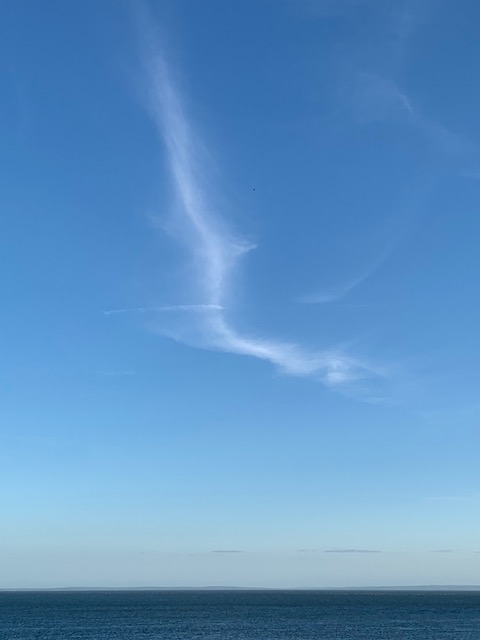 When I turned into the parking lot this same cirrus cloud appeared dwarfed over the vast open waters and even when I captured it with the tip of Partridge Island and distant Blomidon Provincial Park, as a way to introduce scale, it was visually diminished..