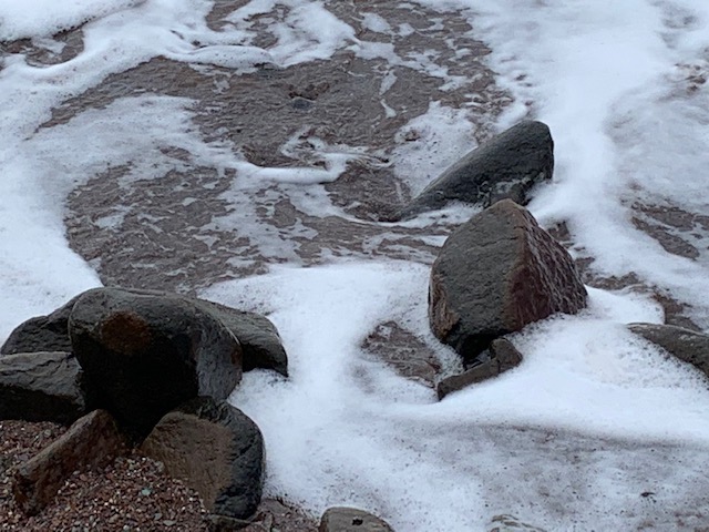 The tide is receding rapidly and, after looking in both directions, I turn left. The closer I get to the water the more intense the sound of crashing waves. It is evident weather is moving in but for the moment I delight in what is right there in front of me!
