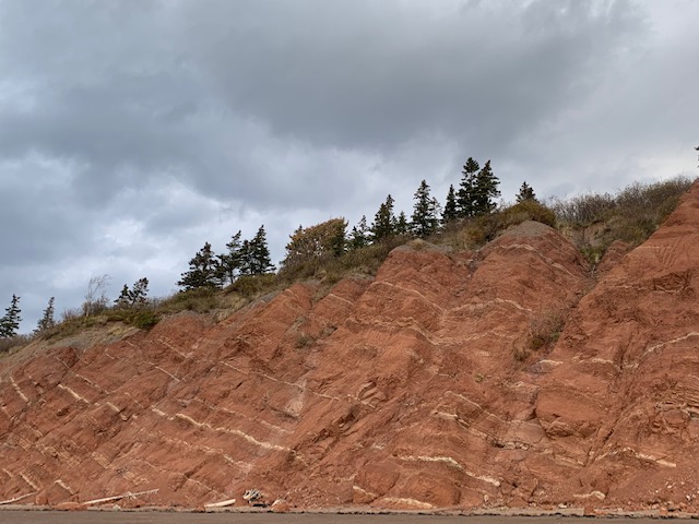 To balance my time indoors during my month-long artist residency I am actively trying to make an effort in spending time outdoors. The weather app tells me that it is raining and I detect a tiny lighting bolt under the cloud. Looking out our living room window I decide that it might be in my best interest to head out of Parrsboro… perhaps I could avoid the rain and thunderstorm?
