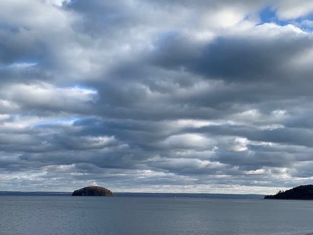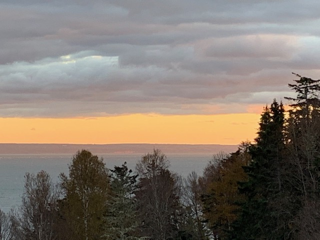 With hardly any traffic on the road we were able to pull over and take in the views and sky colours which made for a leisurely drive. The trees down shore are nearly bare but the colours in the water and sky made for a fabulous display, one not soon forgotten.