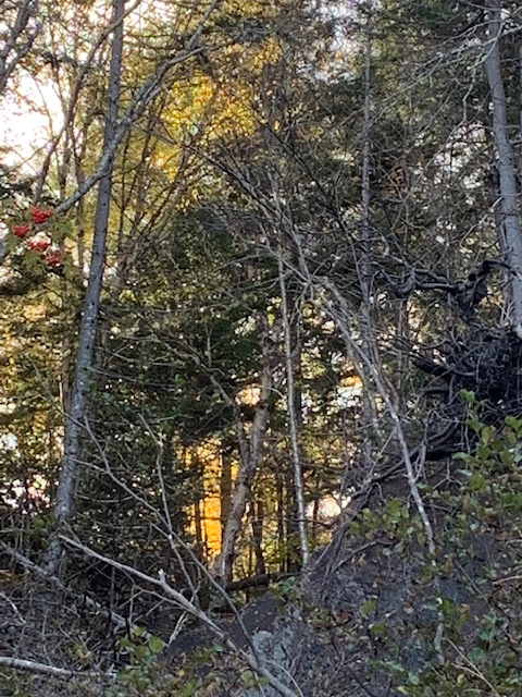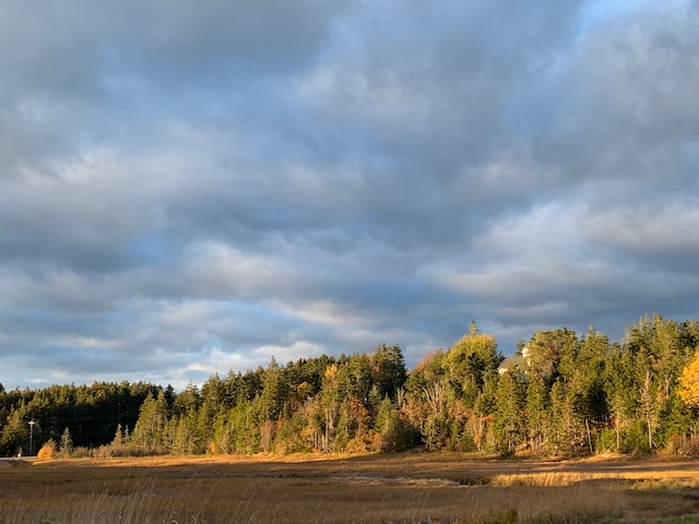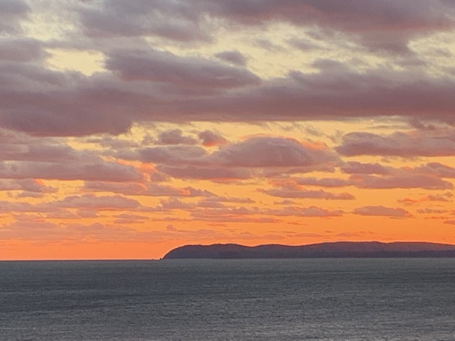 We could not have timed the trip home any better for several reasons: By the time we arrived in Port Greville the sun was slipping below the horizon and the rich sunset colours reflected in the clouds and water. On the radio Carly Simon’s song “You’re so Vain” was playing. The lyrics include “…Then you flew your lear jet up to Nova Scotia / To see the total eclipse of the sun…” We didn’t see the total eclipse of the sun, we witnessed nature’s best colour show instead!