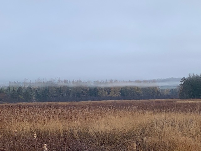 Monday morning started with a layer of fog over the salt marsh, the moisture rising slowly after extremely high tides over the weekend, the water illuminated by bright sunshine. I love these mornings, they are full of mystery and foreshadowing of more quiet times…