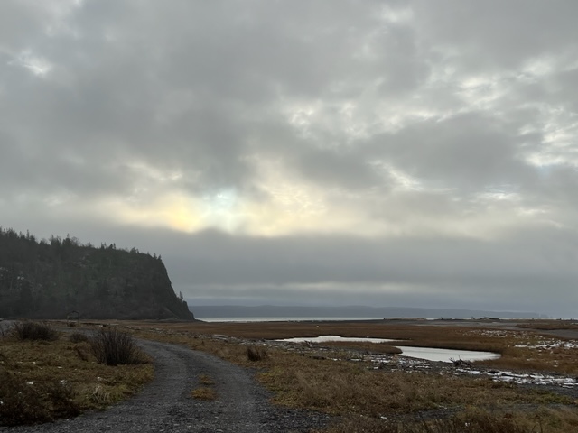 I parked the car and set out for a short walk close to the waterline. The light was mysterious and changing constantly. Instead of waiting a few minutes for it to change it shifted from gloomy to bright every few seconds. The view toward Cape Split was shrouded in grey and with the sun hiding behind whisps clouds over Partridge Island, turning around and looking toward Parrsboro and Second Beach the cliffs were illuminated by bright sunlight.