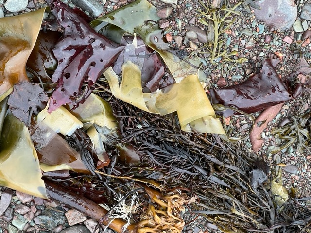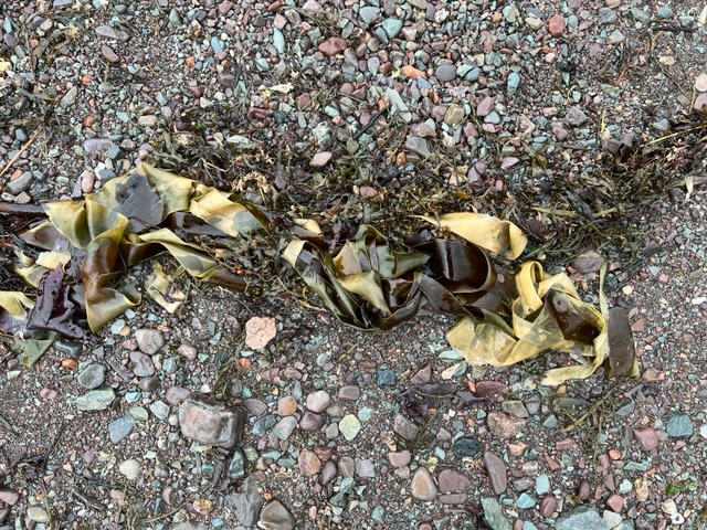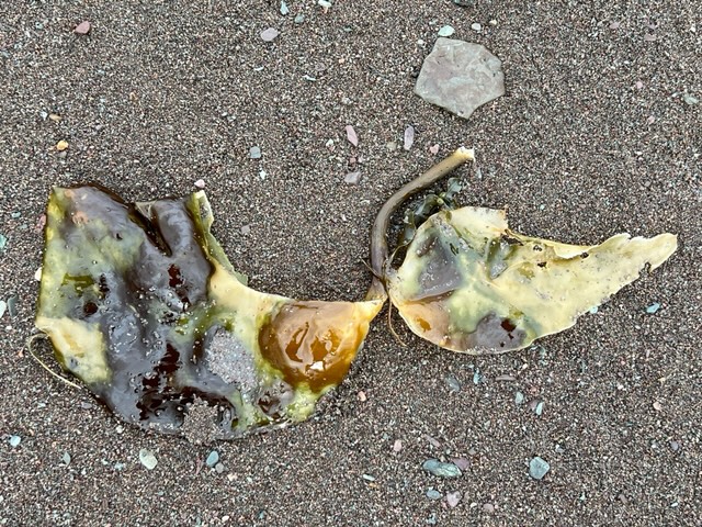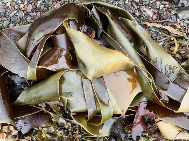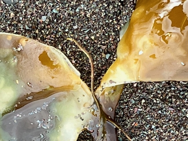 The rain was mixed with ice pellets and my friend Laura and I only braved a short distance before we walked back to the car with the ice pellets massaging our cheeks. It was refreshing… and the beach was littered with some lovely kelp ribbons.