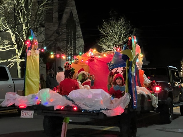 It was a feel-good event, one that was put on hold last year due to pandemic restrictions. The icy wind last night didn’t keep people away, Main Street was lined with family groups, friends who had met up, church groups distributing hot chocolate and cookies, carolers and excited children, all waiting to catch a glimpse of Santa who was riding on the very last float, waving and smiling at all.
