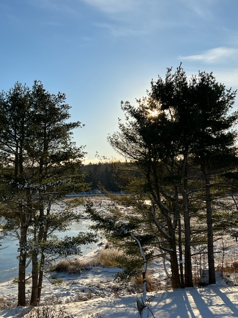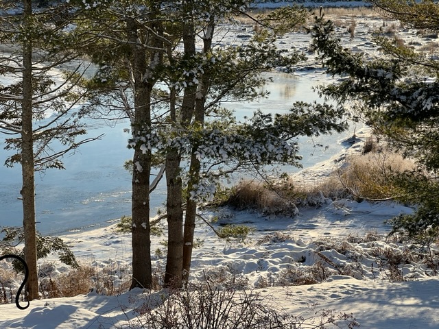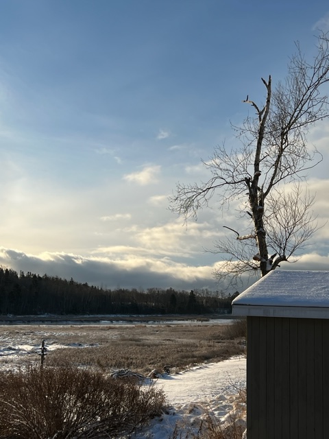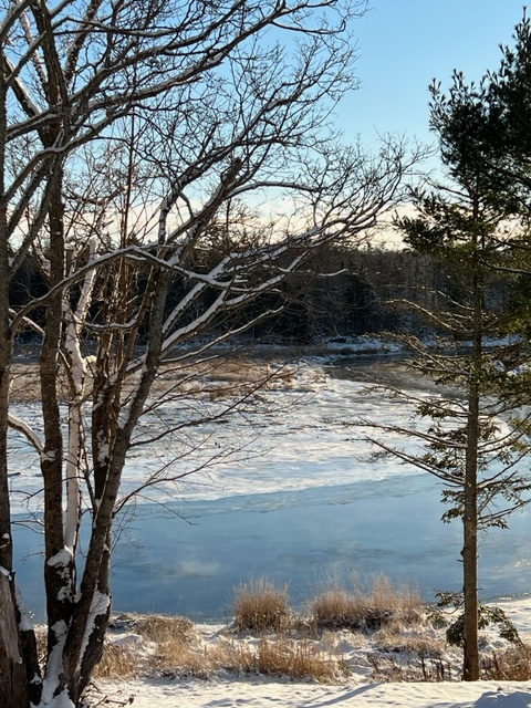 …Ice was flowing on the Ferrels River at the bottom of our back yard. A rare sight indeed but mesmerizing non-the-less. I think it means that winter is here and even the Bay of Fundy gets some ice the odd day.