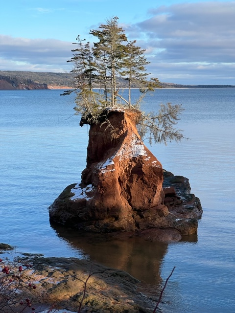Yesterday afternoon, on our way home from Masstown Market, the tide was in and the weather was perfect for a quick side trip to check out my favourite sea stack on this side of the Bay of Fundy.