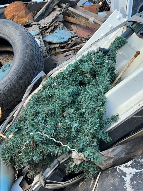 We travelled through forested terrain, much of it logged and therefore not very inspiring. Suddenly we passed an unsightly plot adjacent to the road. Was it a municipal dump? An appliance selvage location? We actually turned the car around to investigate. As soon as we stopped it became abundantly clear that this unsightly spot along the road was an ordinary dumping ground for appliances, children’s toys, old tires and other unwanted items… To make matters worse, across the road the wooded area was littered with old chesterfields, chairs, tables and other additional household items. Who started this mess? An why? Could it have been sheer laziness…n