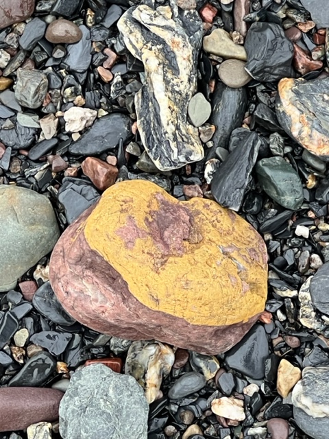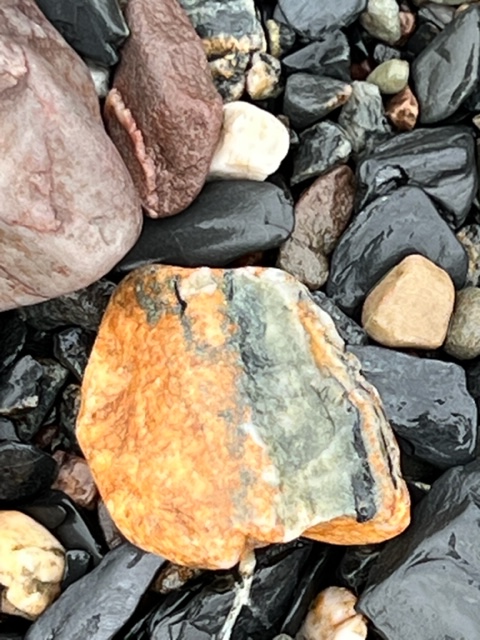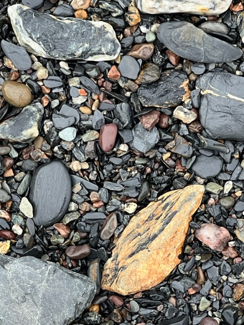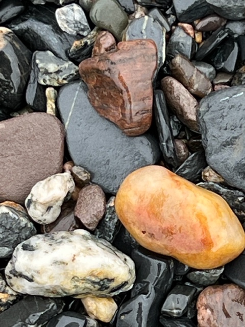 I recalled my very first visit to this spot as I was walking toward the water’s edge. A little overwhelmed by the expanse of the beach I had looked down and was immediately drawn to the colourful offerings by Mother Nature. I am sure you will agree that the pebbles underfoot are not only intriguing for their colour but also their textures and patterns. I can’t get enough and finding a favourite pebble isn’t easy!