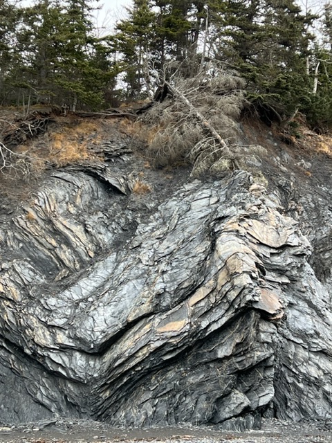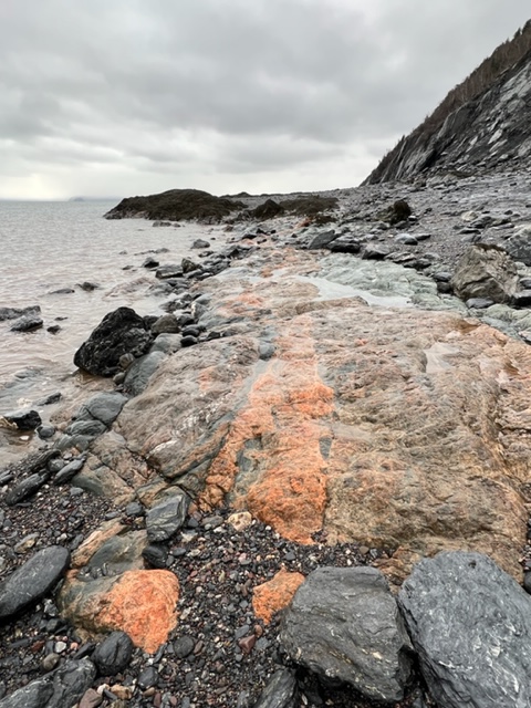 It has been almost a year since I visited Wards Brook Beach for the first time. My second attempt was during a tidal phase when the water was too high to venture more than about 20 meters along the cliff edge. Last week I watched the weather carefully and while the sky was overcast, the wind was down and the rain held off for another day. I decided to explore this striking part of the Fundy Shore and UNESCO GeoPark.