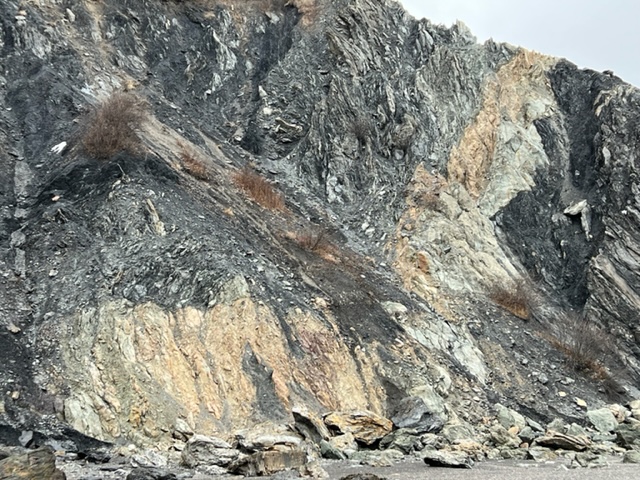 The cliff edges are as colourful as the pebbles and with the gray sky and high humidity, it was a fascinating display of colour and layers created over the course of this area’s natural history. Evidence of volcanic activity and the incredible force of continental plates colliding to lift, fold, compress and shift the layers juxtaposed with colourful sandstone cliff faces catapulted me forward to find just one more amazing section to photograph.