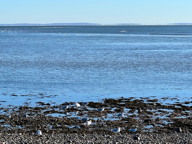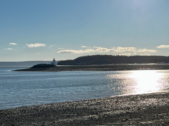 When the sky was so beautiful and clear yesterday we decided to go for a short excursion. We ended up at First Beach across from the Parrsboro Lighthouse and found it hard to believe that we had just weathered a major winter storm that brought destruction and lengthy power outages to most of Nova Scotia. I enjoyed a short walk along the calm waters of the Bay of Fundy with gulls circling overhead and seasoned sea glass under my feet.