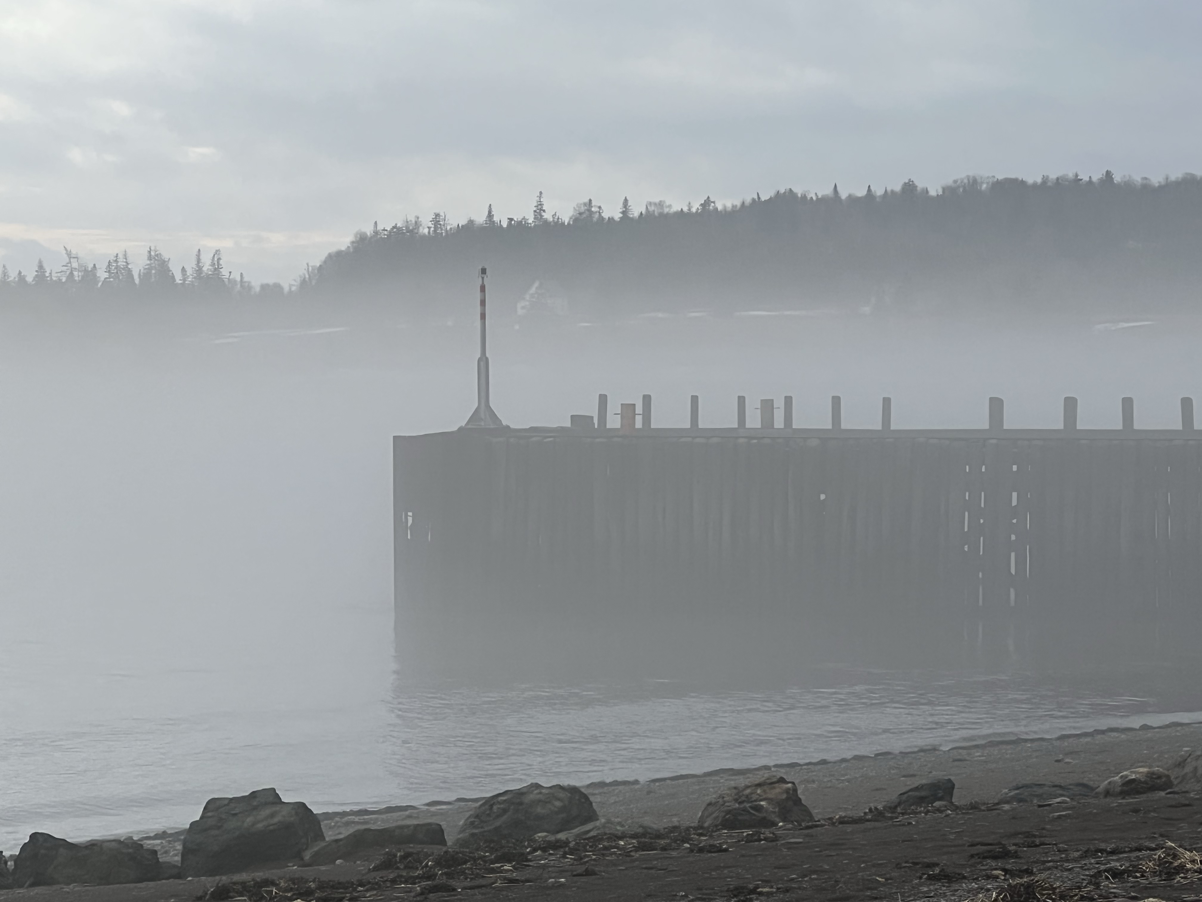 Following a night of heavy rain I made my way to Truro yesterday. On the way home fog was rolling off the Bay of Fundy toward the Cobequid Highlands and by the time I arrived back in Parrsboro the fog horn was calling… a quick drive to the pier provided a few serene moments after a busy day.