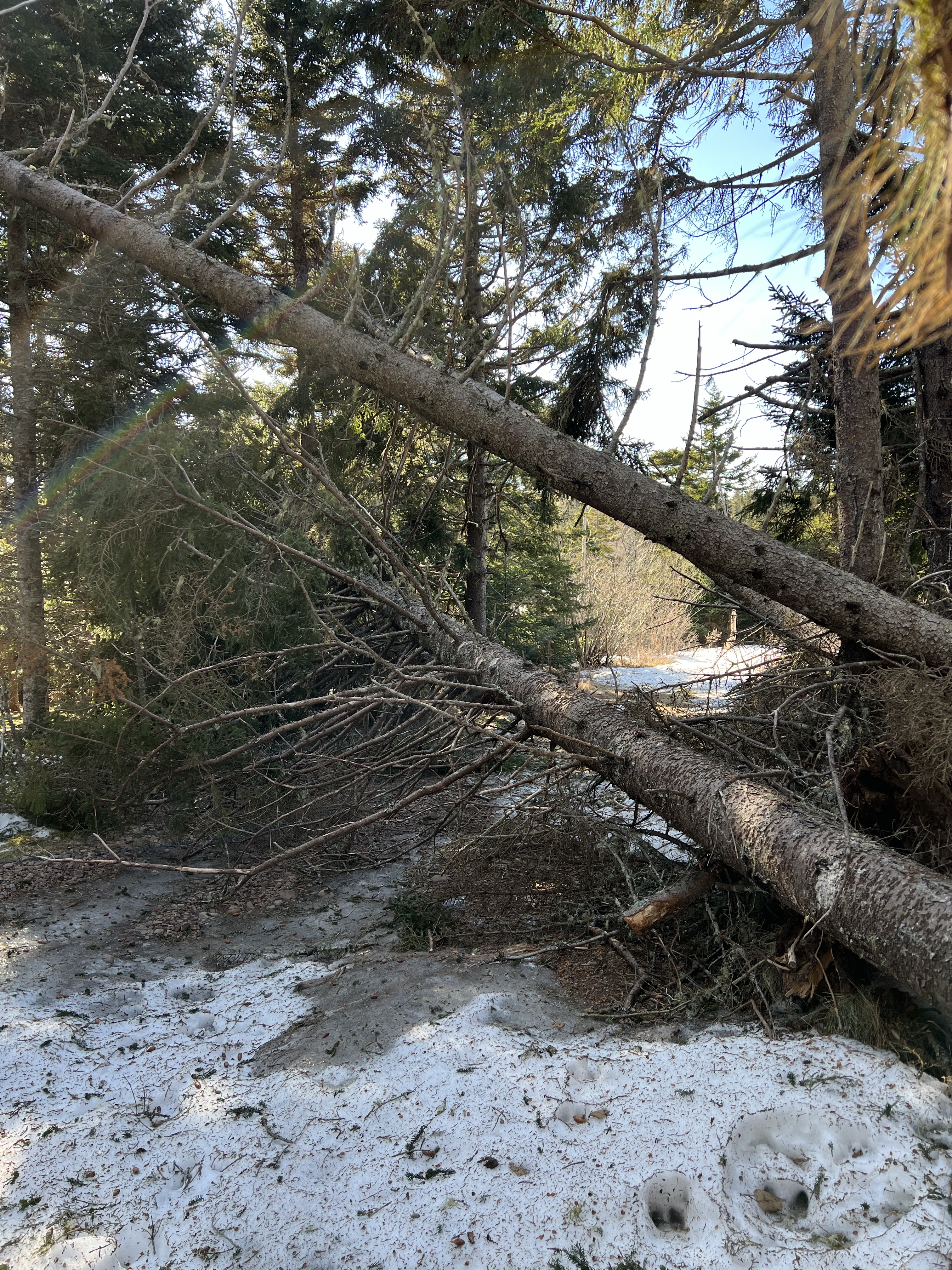 We even had to walk around a large evergreen downed during one of the winter storms. Once we arrived at the salt marsh I knew that we would be rewarded soon…