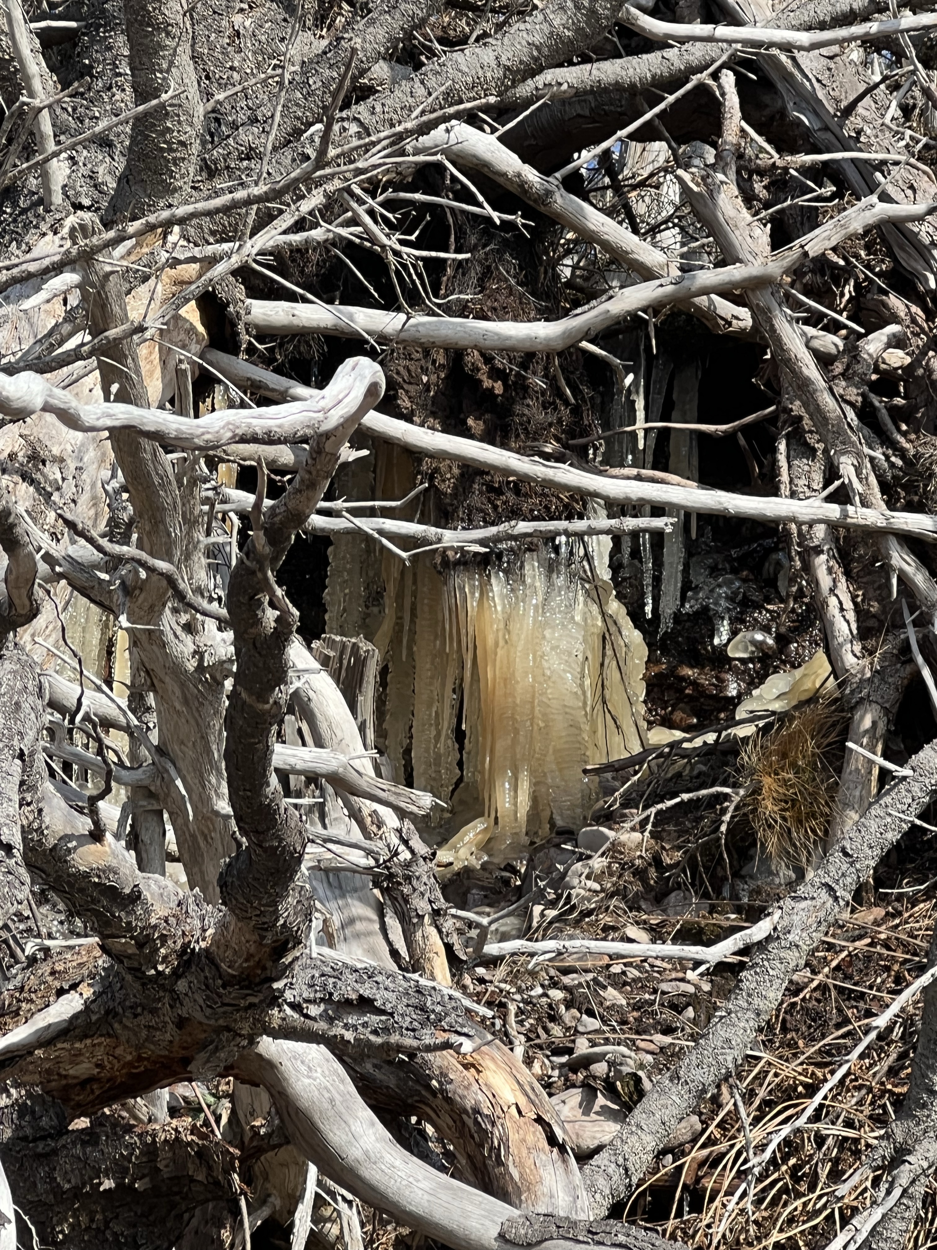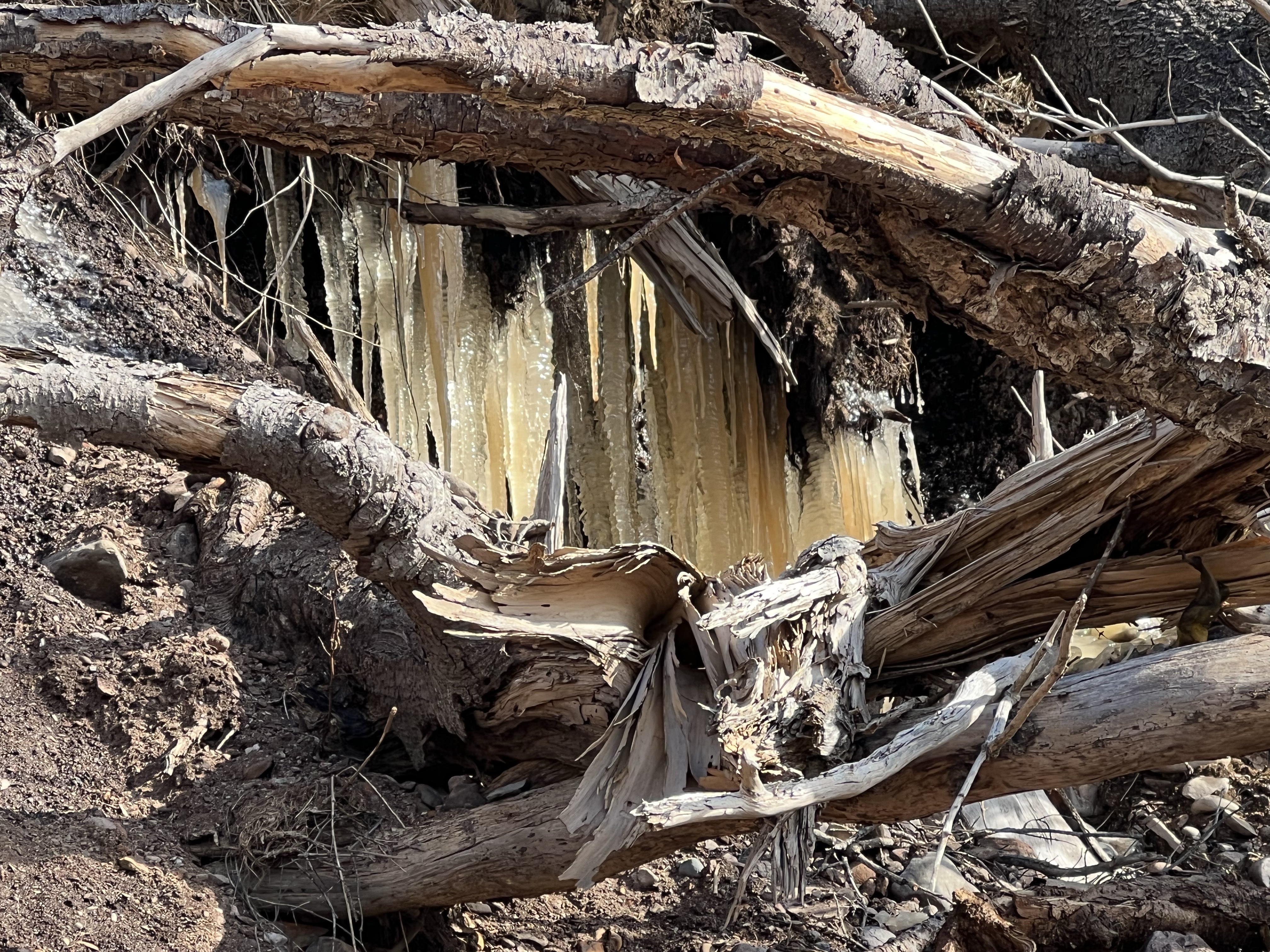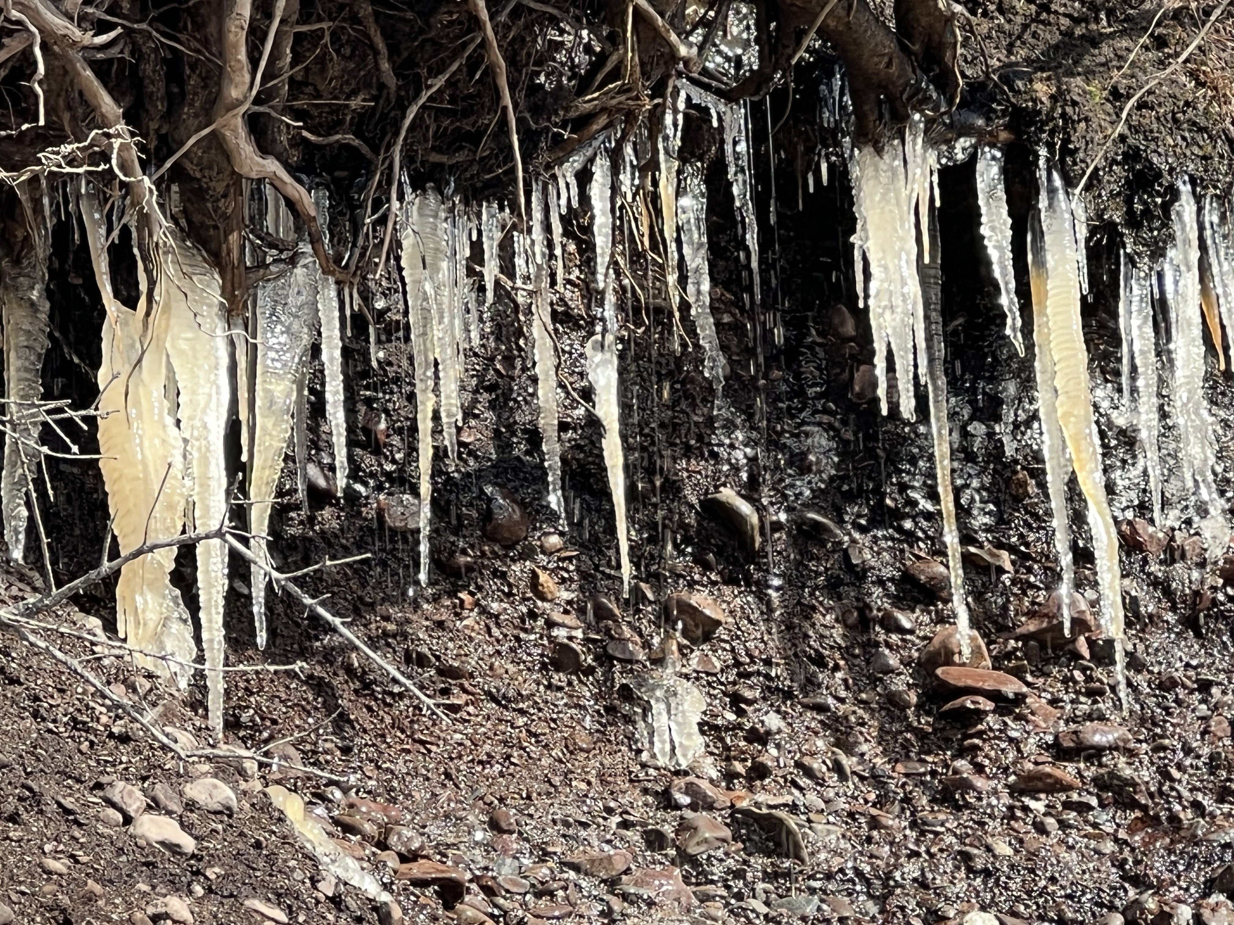 And this time the cliffs demanded closer inspection of its hidden treasures, impressive icicles that were dripping and sparkling in sunlight reaching into their cool caves.