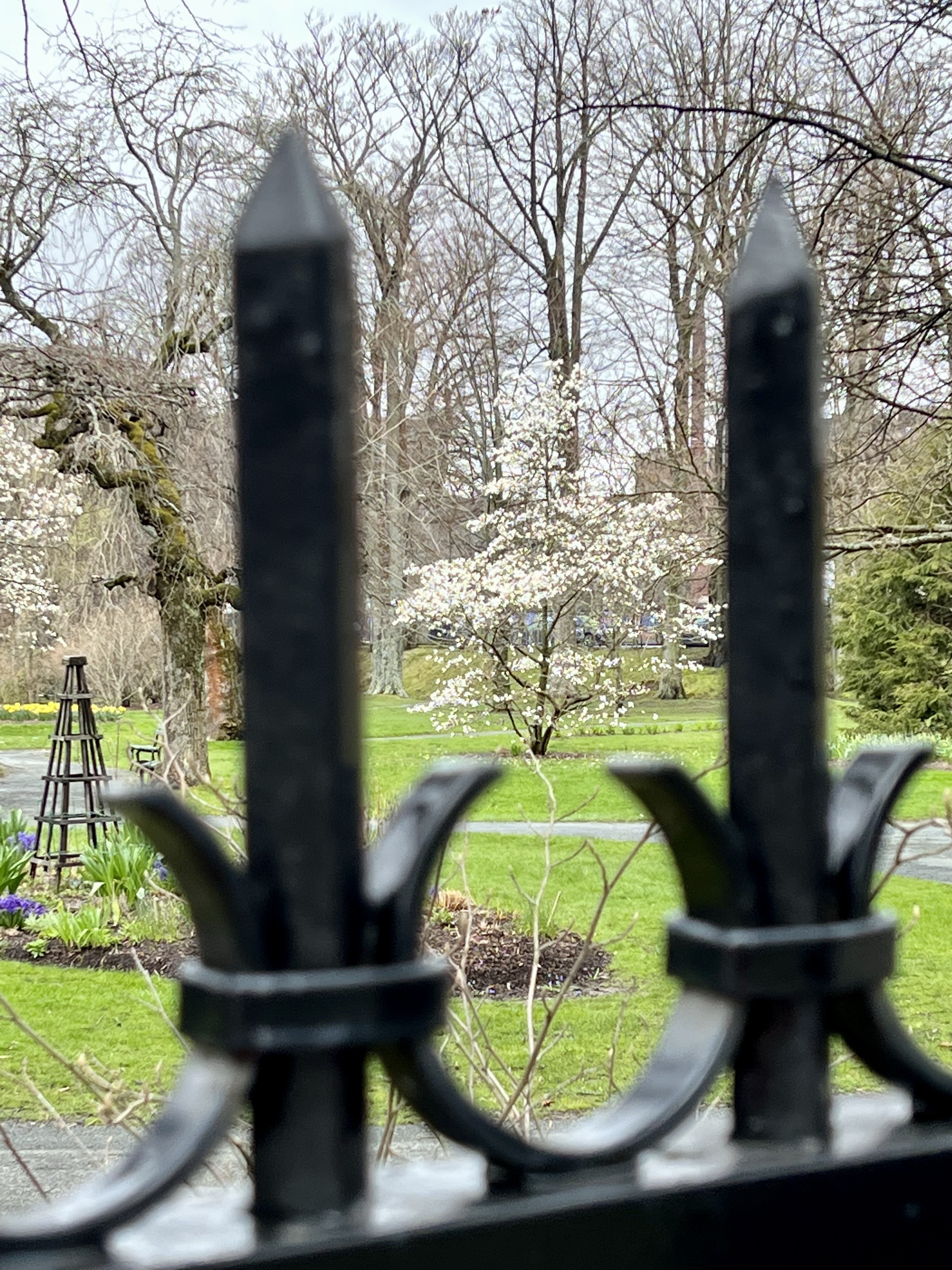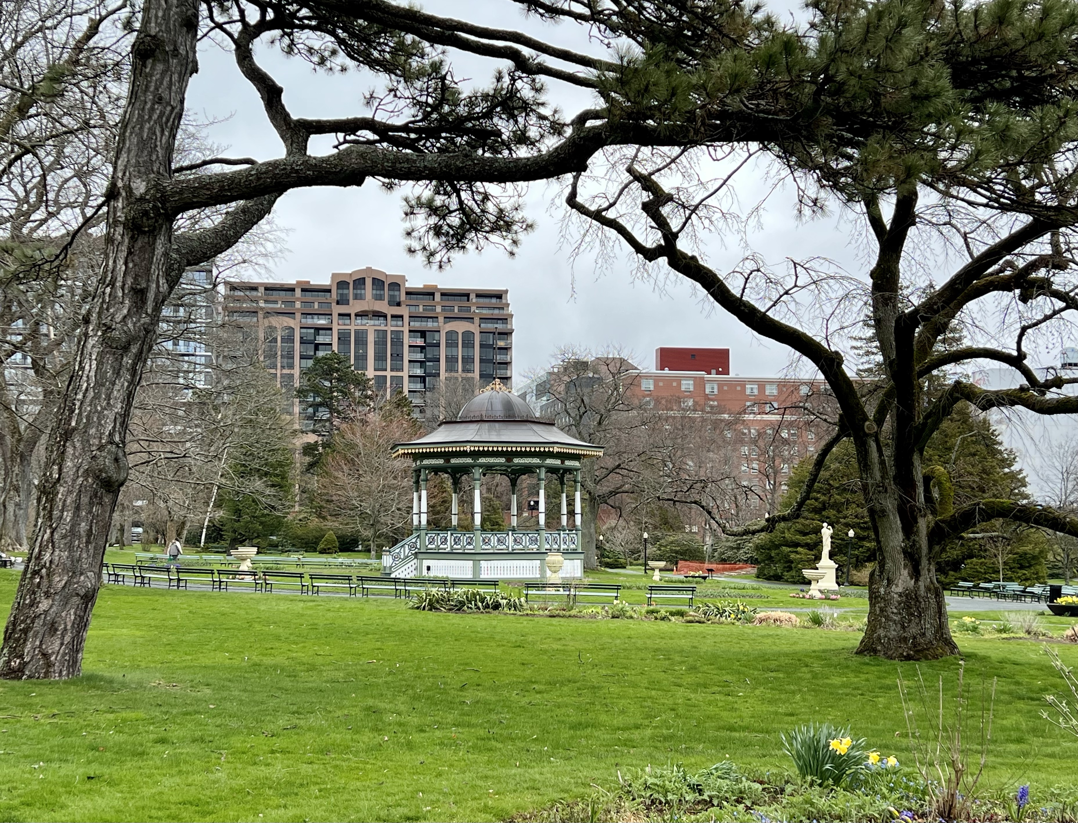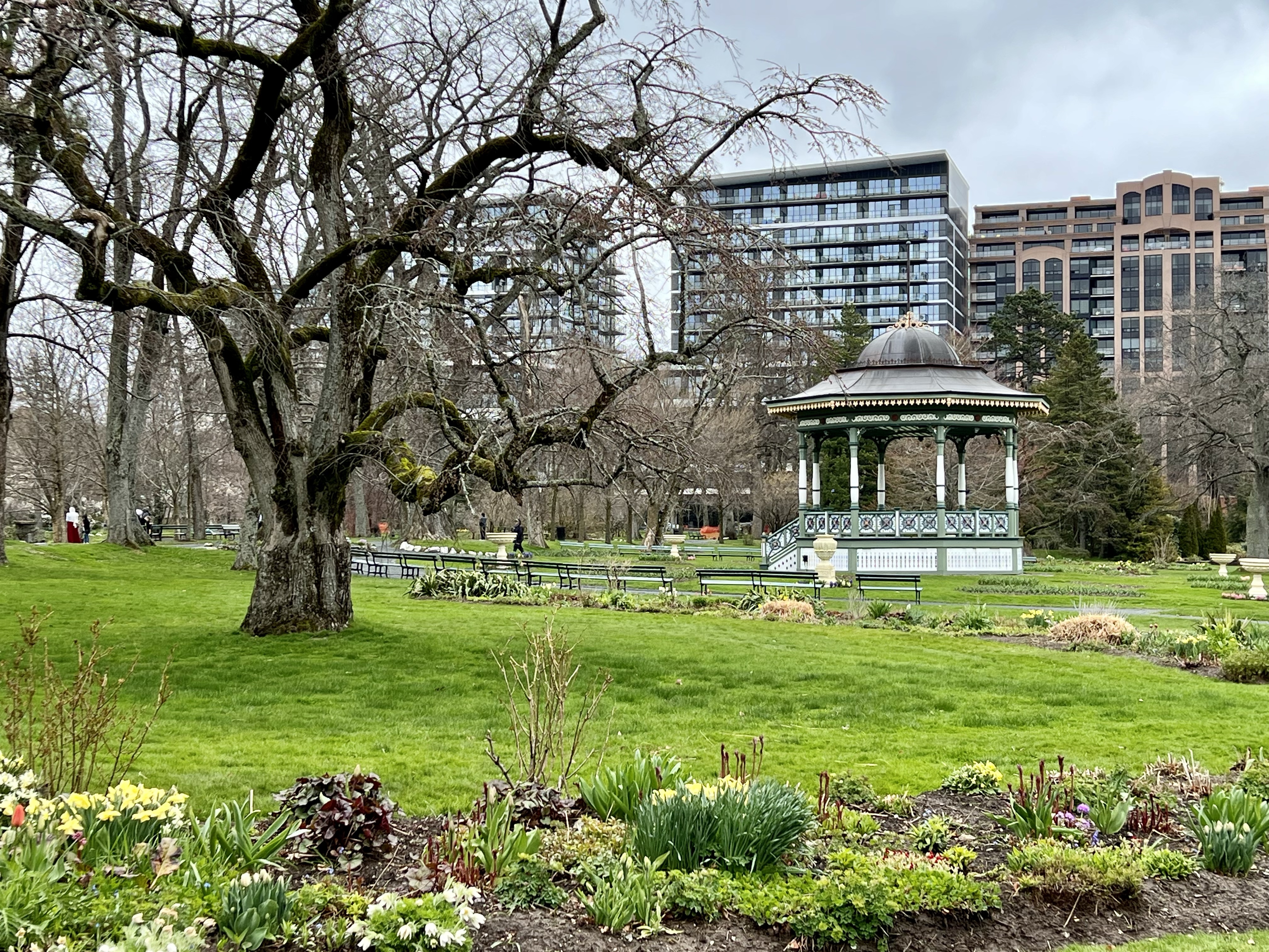The rain had stopped by the time we reached the city yesterday morning. The pups and I decided to spend the time walking and exploring the neighbourhood while we waited for Colin. I knew the Public Gardens were nearby and we set out in that direction. When I reached the main gate I realized pets are not allowed in the gardens, so, back to the car we went. With Ash and Teak comfortably nestled in their car seats I walked the short distance back to the Gardens and explored the early springtime display on my own.