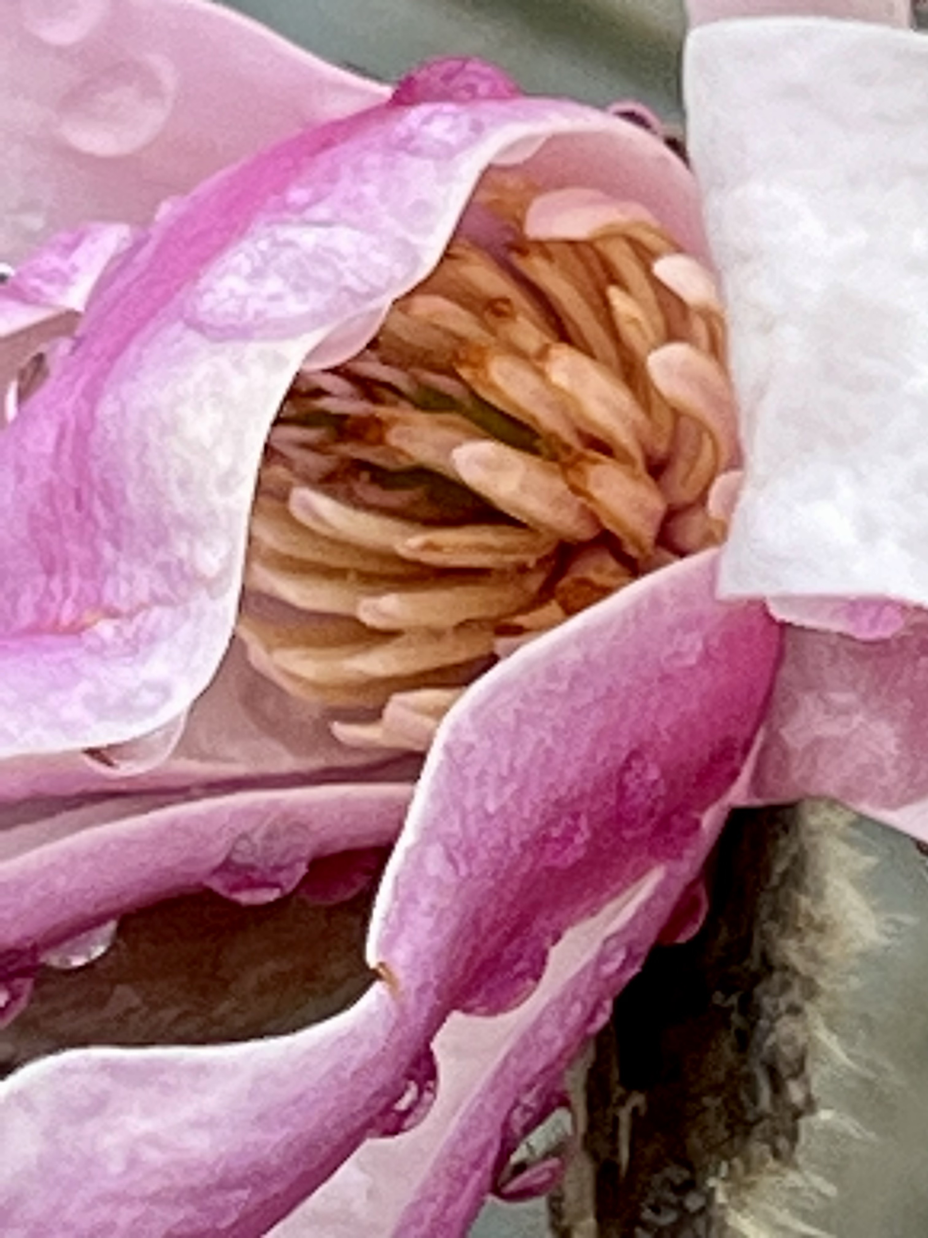 Yesterday I delighted in the raindrop adorned magnolias in and around the water features and Band Stand.