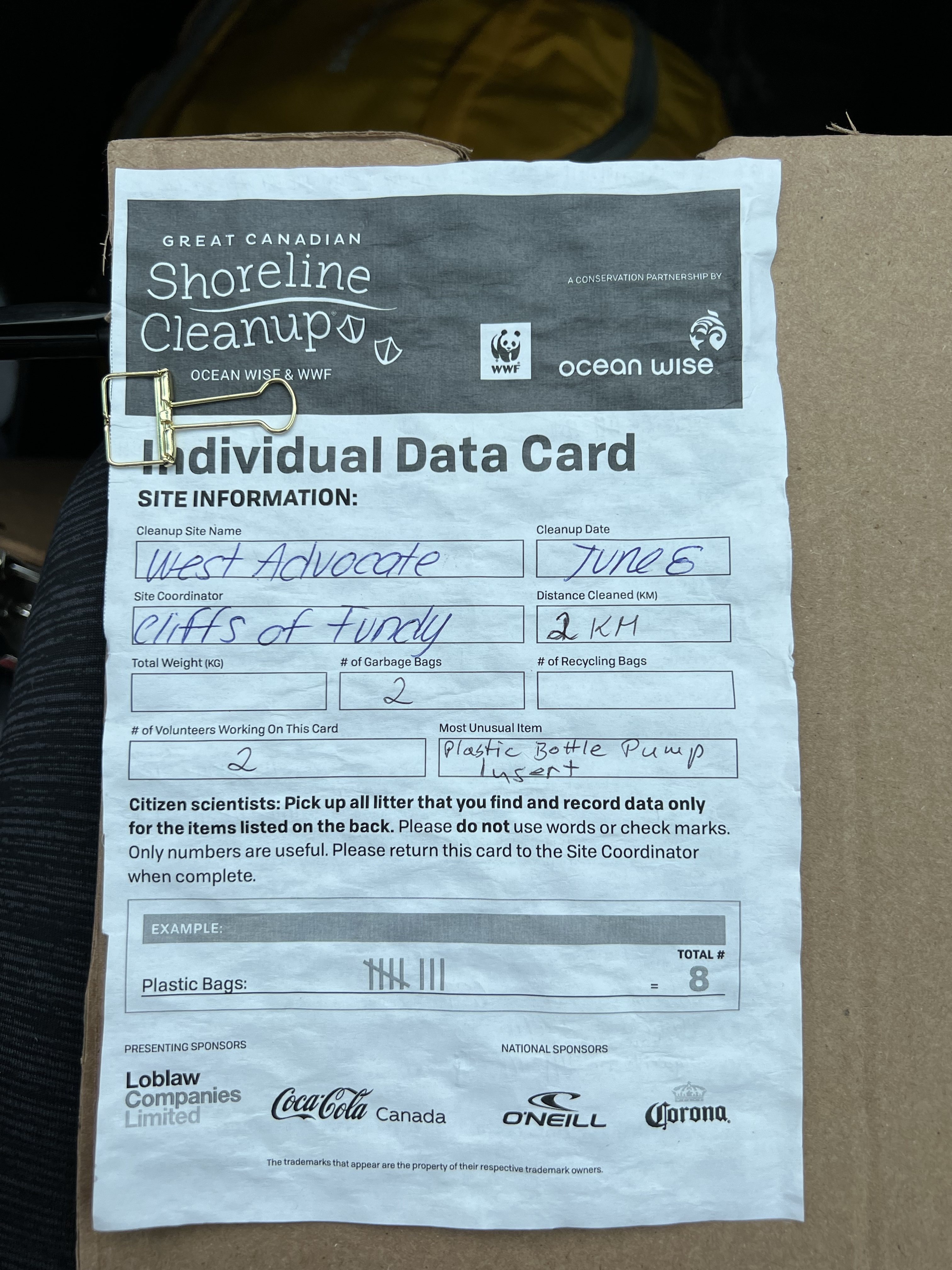 June 8th is World Clean Oceans Day? We did our bit at West Advocate (Driftwood Beach). We joined a group of like-minded people to cast our eyes to the pebble beach and gather trash.