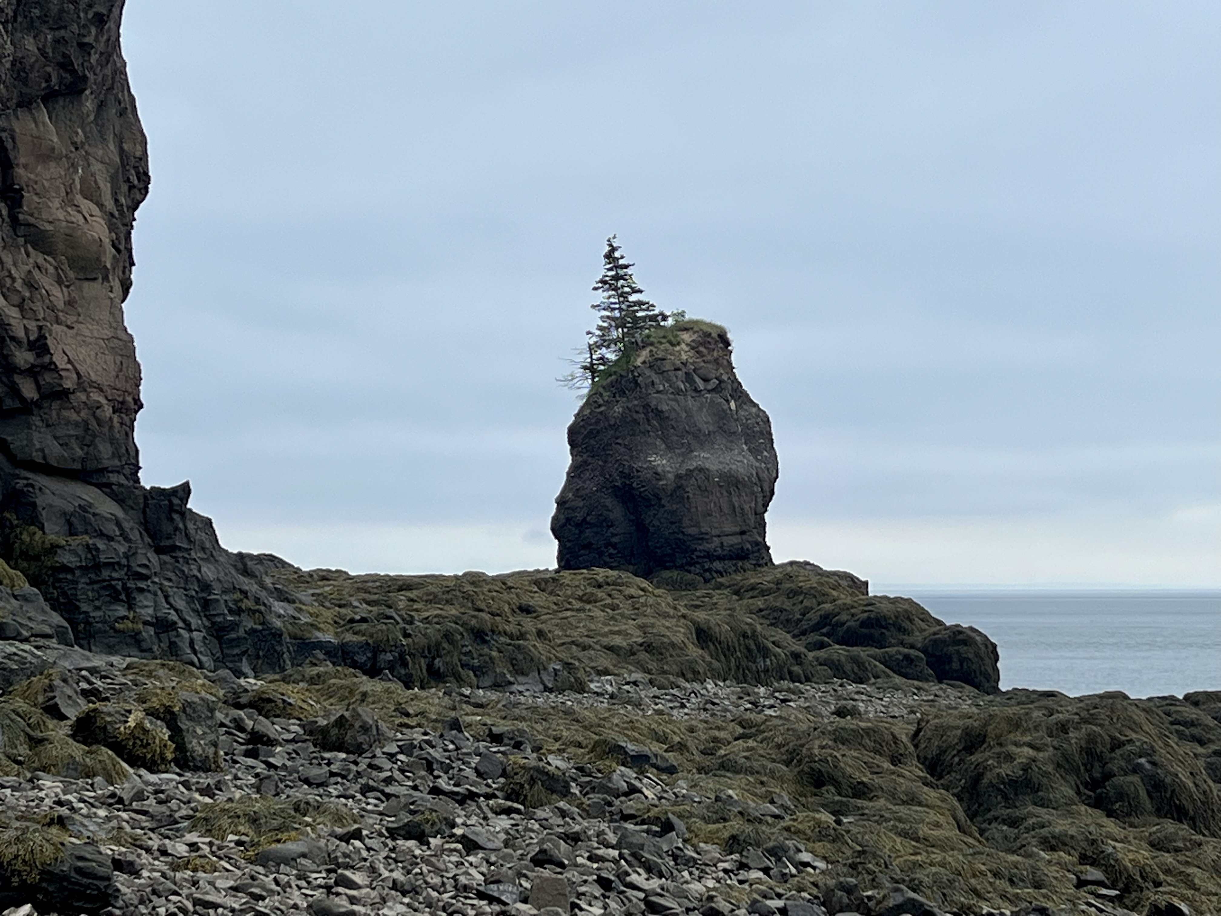 I am always up for an adventure and exploring areas I have not visited before. I was invited to join friends and their German visitors to explore the other side of Partridge Island. This has been on my bucket list ever since I enjoyed the view from the look off from the top. As with anything: looking up from the sea stack admired from afar was so different and well worth the slippery scramble across seaweed covered rocks recently exposed by the receding tide.