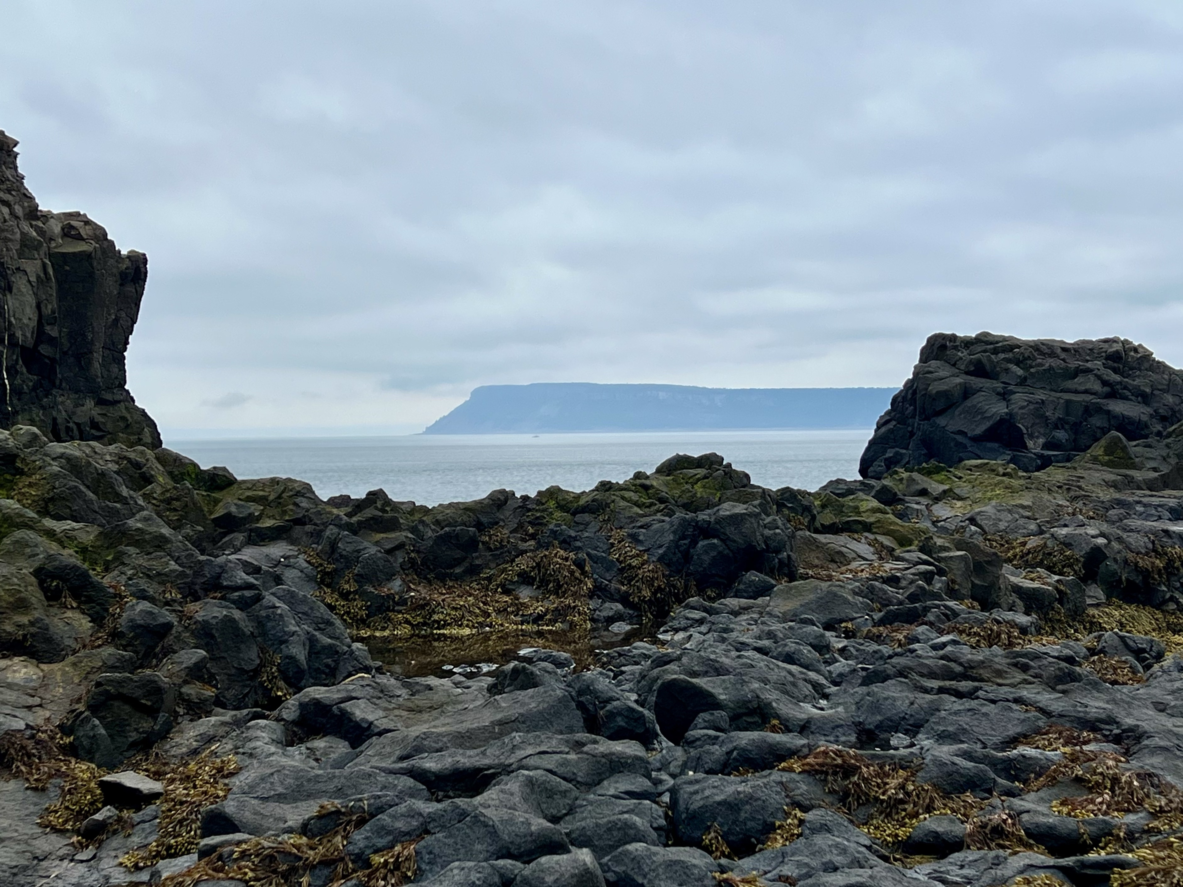 Taking it slow across the slippery basalt rocks past the weir was the key. We were soon welcomed by stunning views toward Cape Spear and Cape Split.