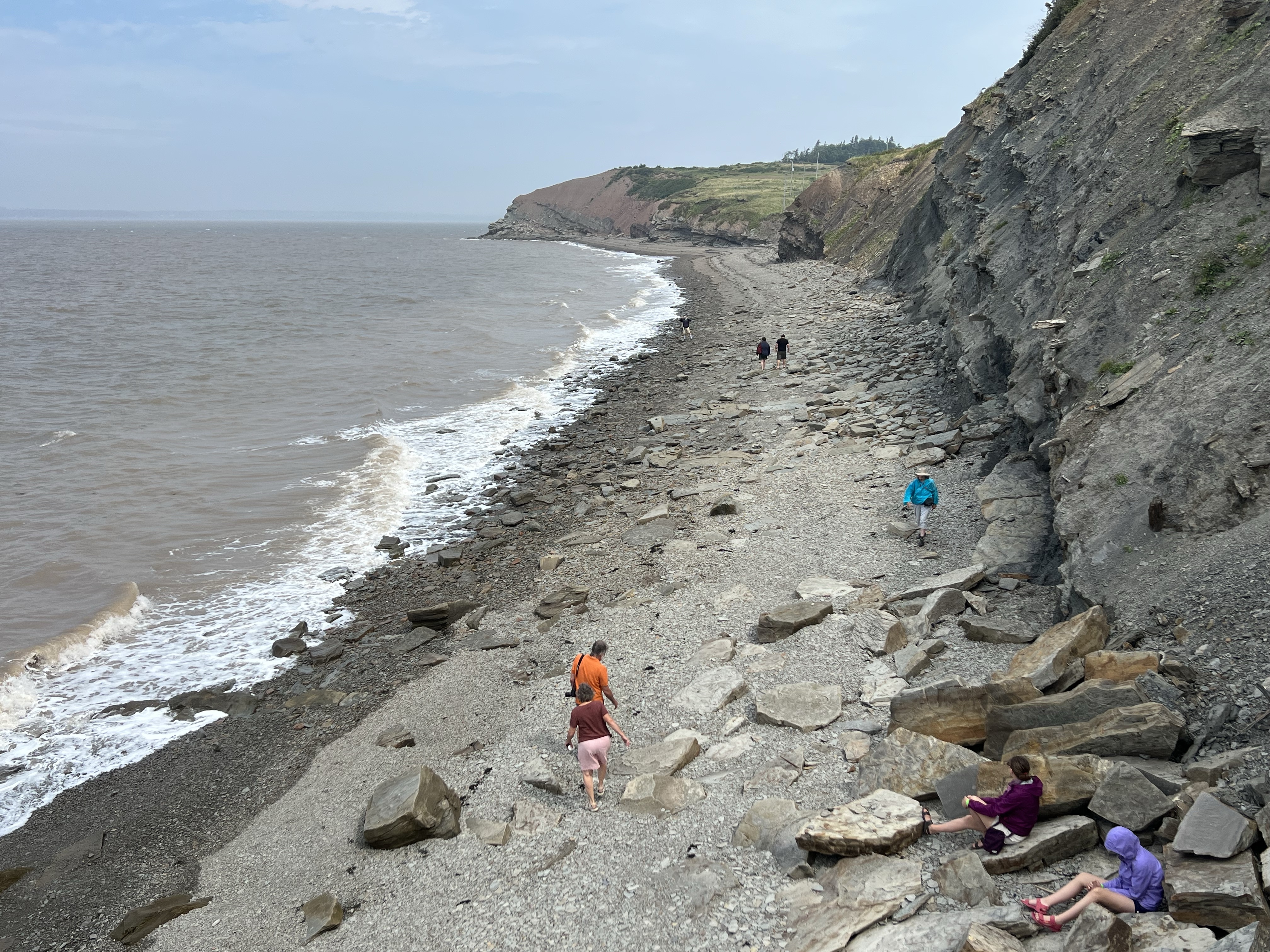 With family visiting we explored the grounds around the Fossil Cliffs Centre and the beach first. The wind was strong but on the warm side. Visibility to New Brunswick was not so good with the heavy mist. But the rocks under our feet glowed!