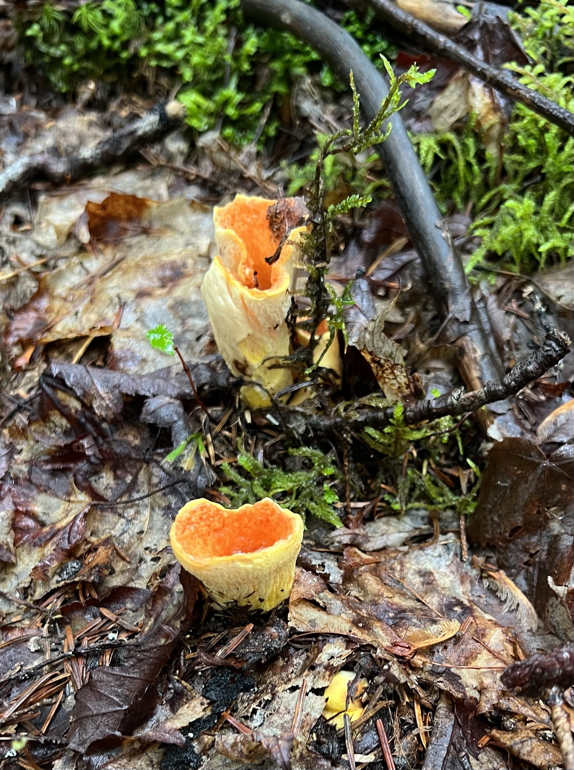 I checked deep into the woods and the mossy patches under trees for mushrooms. There were a handful of chanterelles to bring home. The Woolley chanterelles were impressive in their size but since they are not edible my initial excitement was quickly dampened.