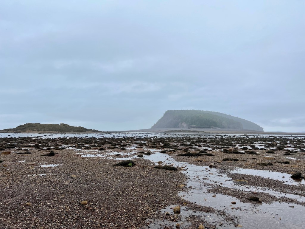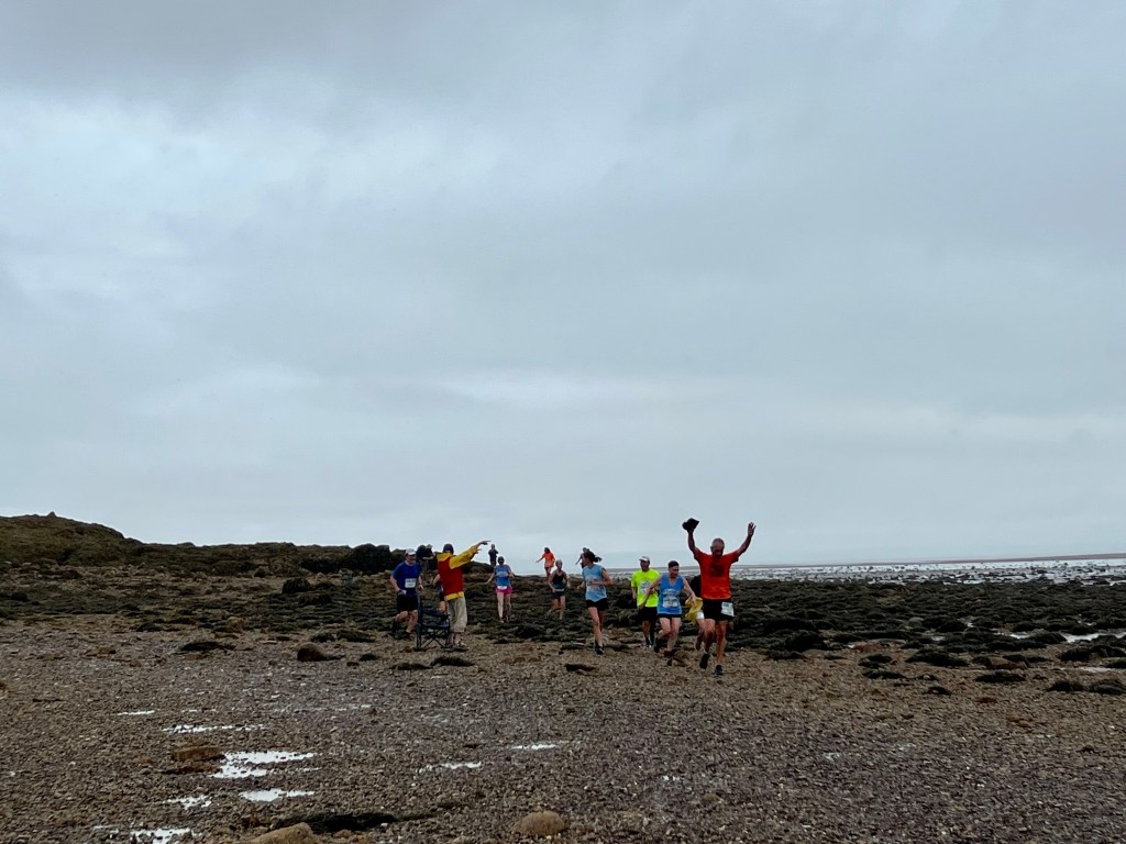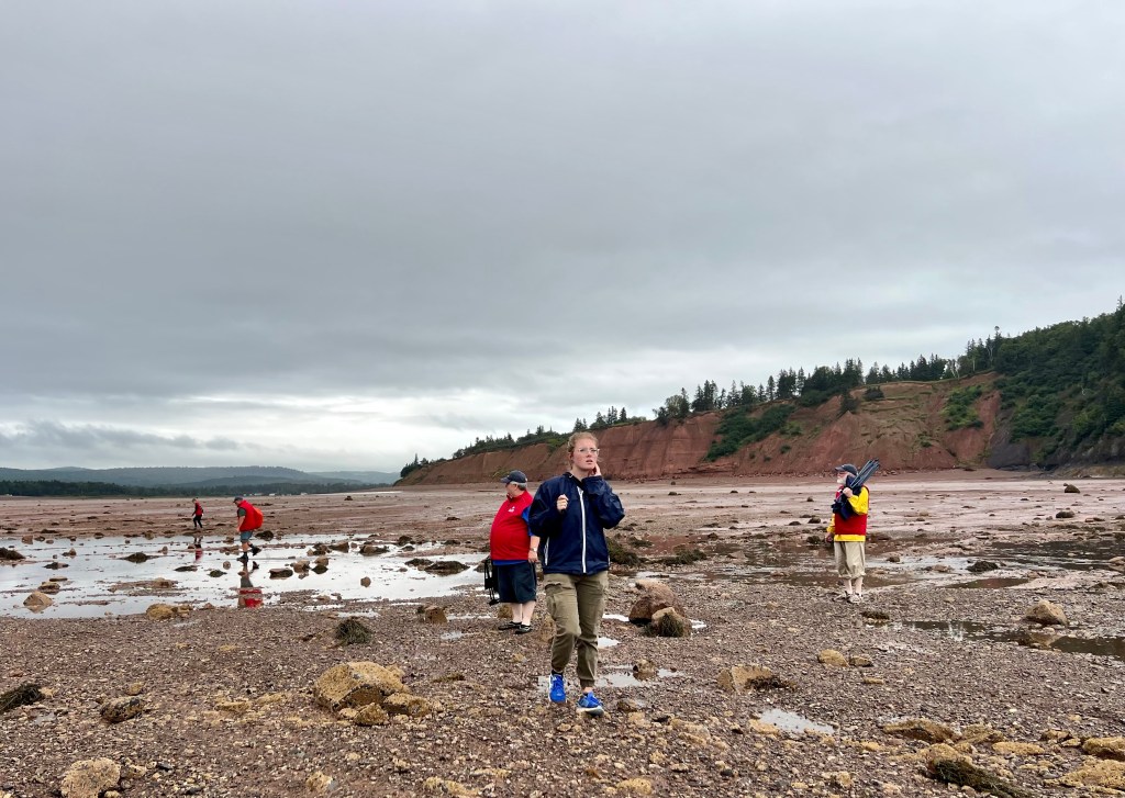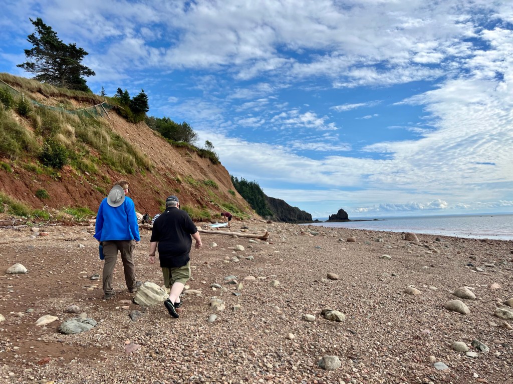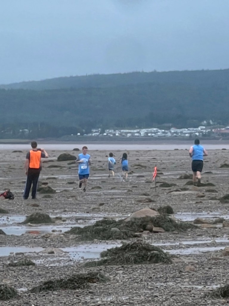 It’s back!!! After two years of cancellations the annual run between Soley’s Cove and Five Islands is back! “Not Since Moses” 5 k 8 km Fun Runs took place earlier today. The call to volunteer went out to the Fundy GeoPark Seniors last month. We joined the GeoPark geologist Caleb Grant on Friday as well as Summer Student GeoPark Seniors Coordinator Cassie Mollins for the pre-run orientation st 8 a.m. today. Our official mission: keeping the protected areas of the endangered Mud Piddock Clams out of bounds for the runners.