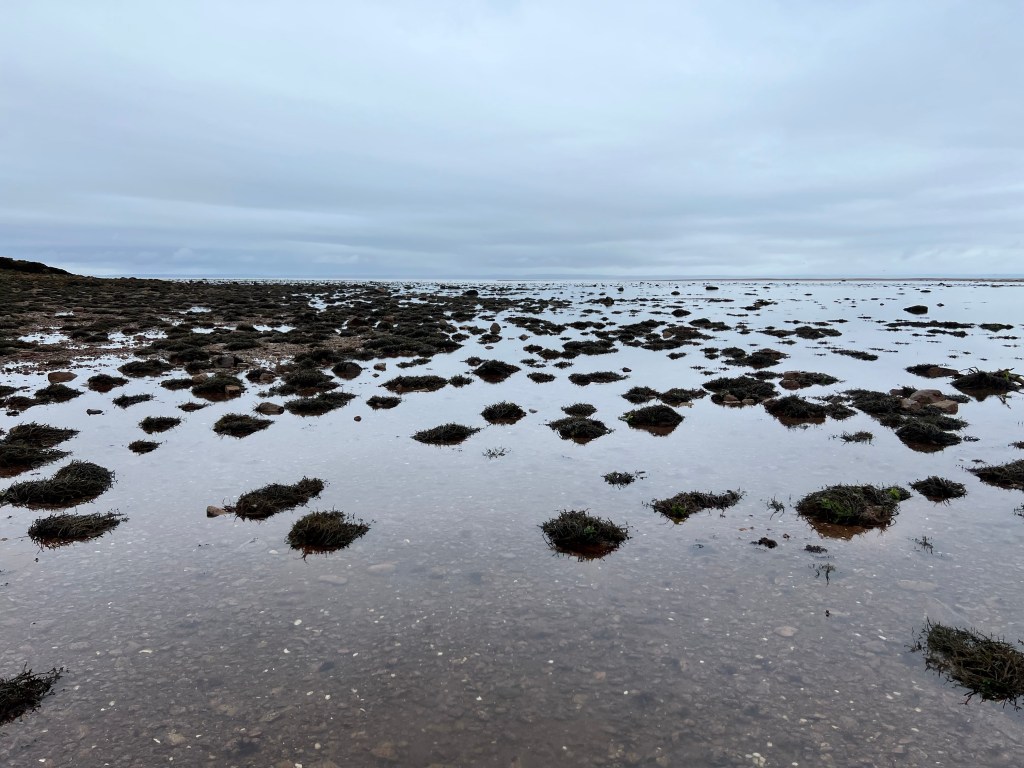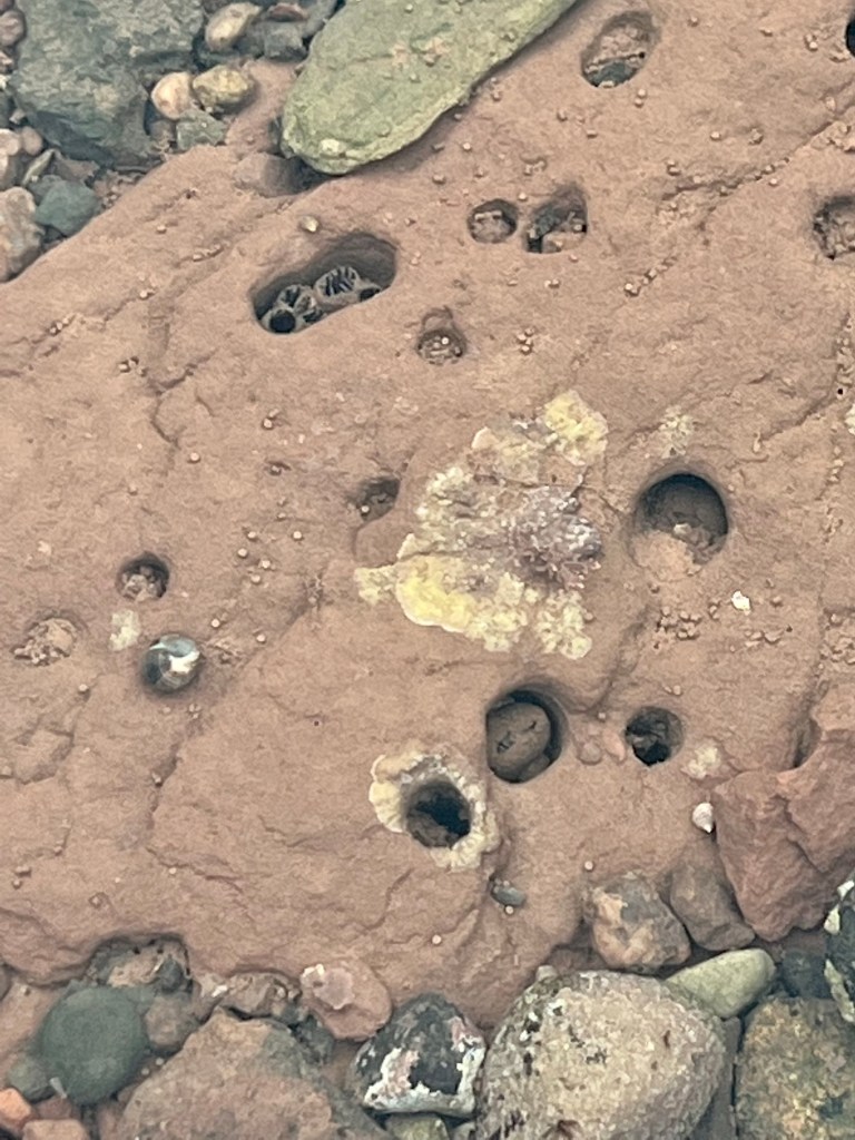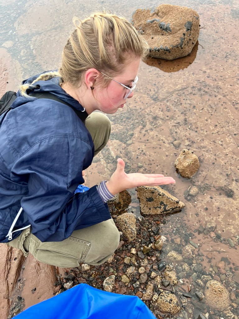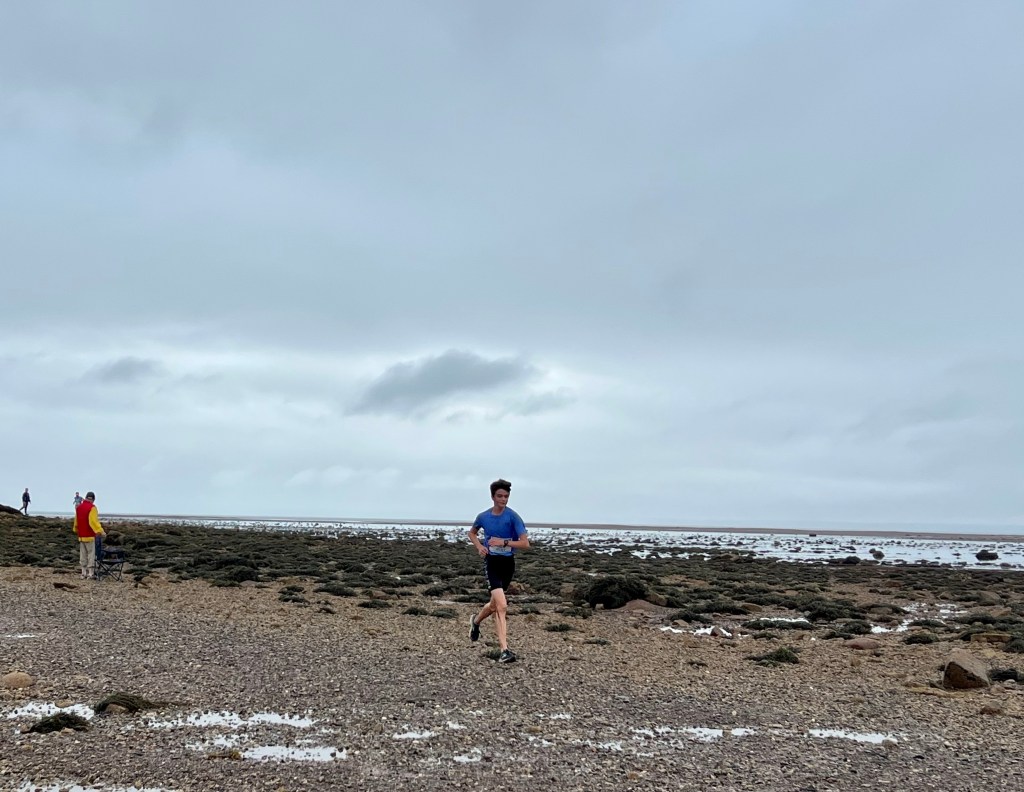 It’s back!!! After two years of cancellations the annual run between Soley’s Cove and Five Islands is back! “Not Since Moses” 5 k 8 km Fun Runs took place earlier today. The call to volunteer went out to the Fundy GeoPark Seniors last month. We joined the GeoPark geologist Caleb Grant on Friday as well as Summer Student GeoPark Seniors Coordinator Cassie Mollins for the pre-run orientation st 8 a.m. today. Our official mission: keeping the protected areas of the endangered Mud Piddock Clams out of bounds for the runners.