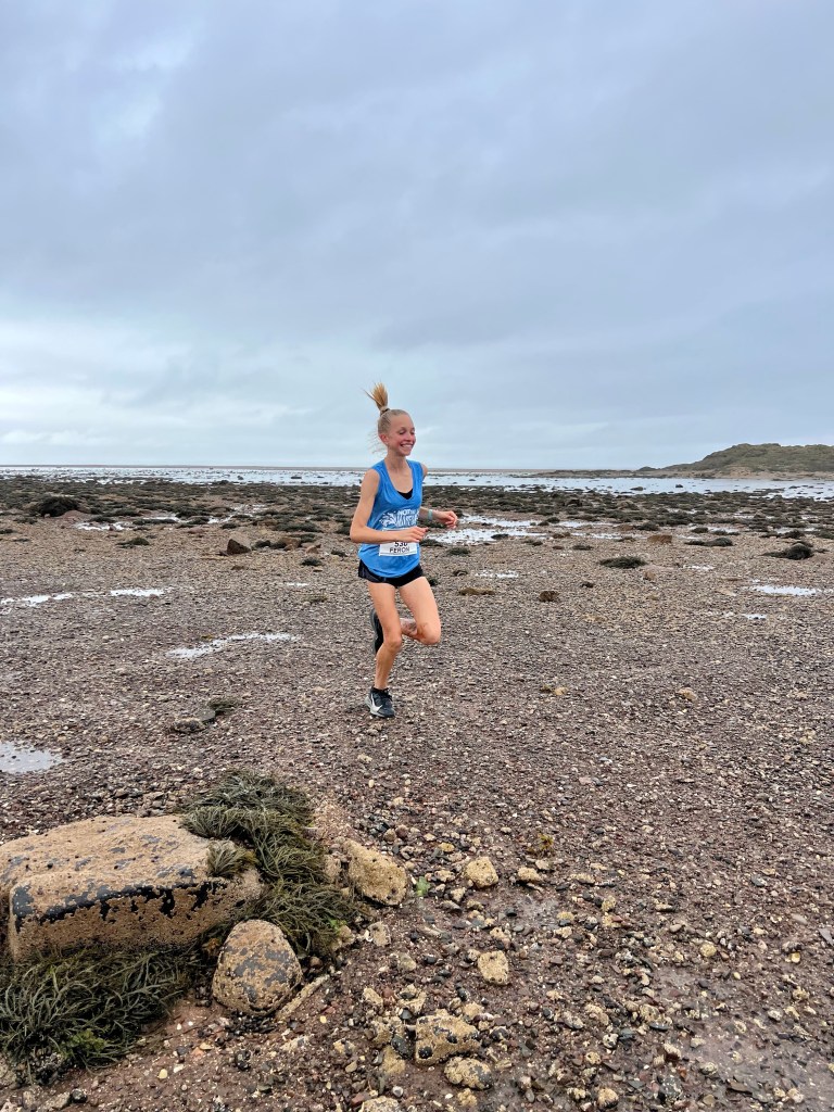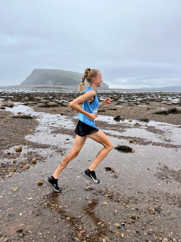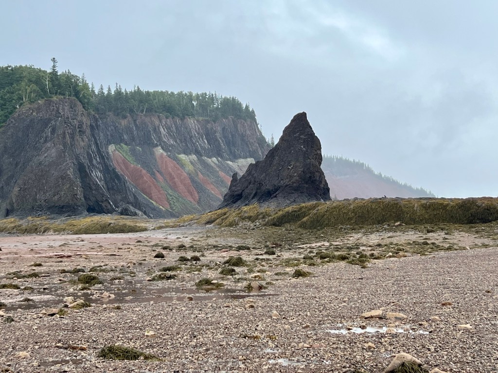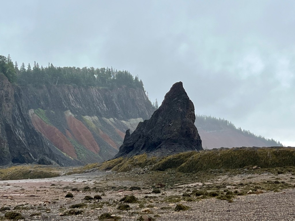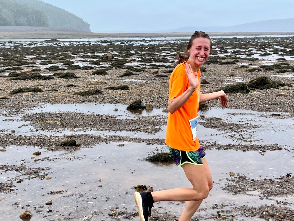 At my back a personal favourite landmark first encountered in 2018 while camping at Five Islands Provincial Park: The Old Wife Rock and Old Wife Formation never disappoint! The rain intensified about half way through the race but watching runners pass and cheering them on took my mind off the liquid sunshine.