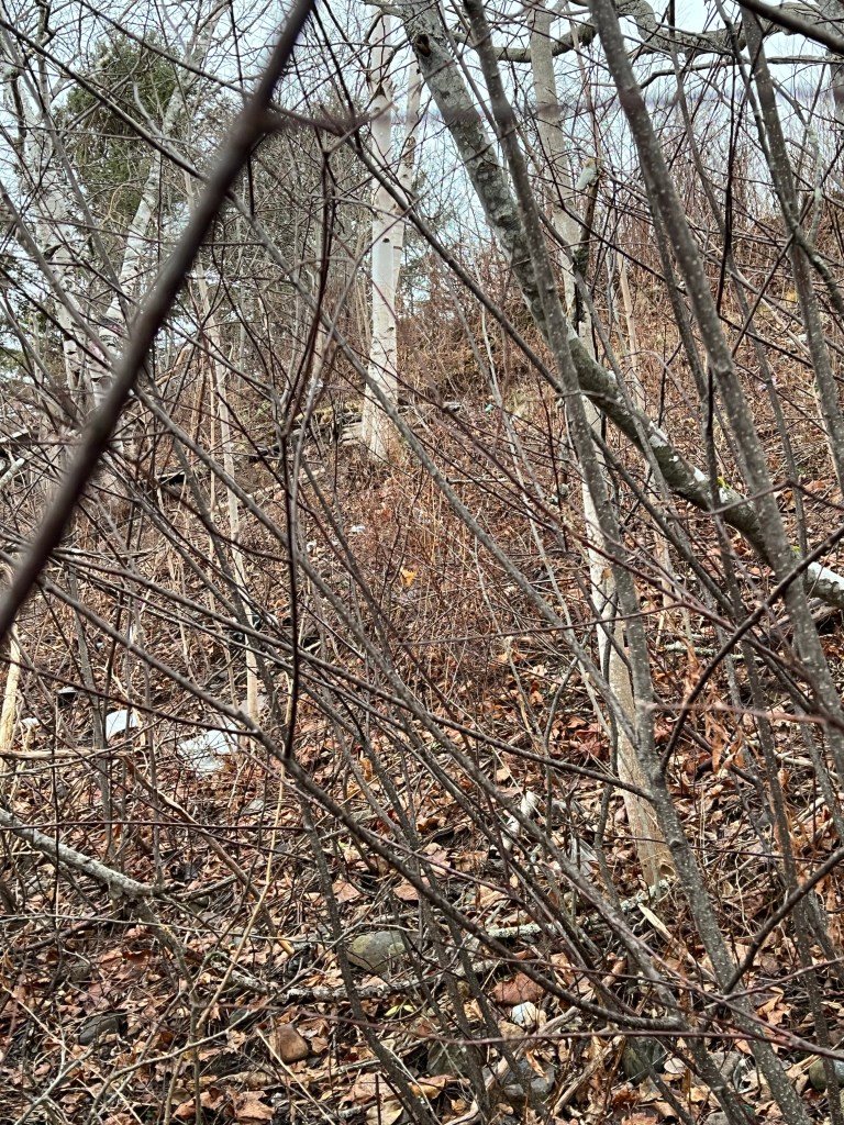 I am sure everyone has a spot in the town or village they reside in that could use some attention. I have been walking past a popular teenage hangout on a wooded hill almost daily for two years now. It’s tolerable in the summer when the bushes and trees are in full foliage but once the leaves drop the area is an indescribable mess! Snow will also cover up the unsightly trash site but snow eludes us this year.