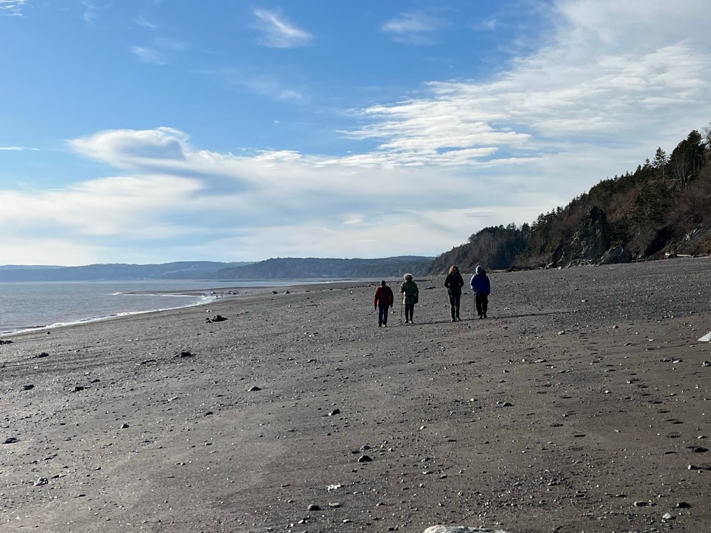 With five participants and loads of enthusiasm I was very pleased about the level of interest this hike generated. The beach was vast due to the outgoing tide and the light was magical, as it so often is after several days of rain and snow.