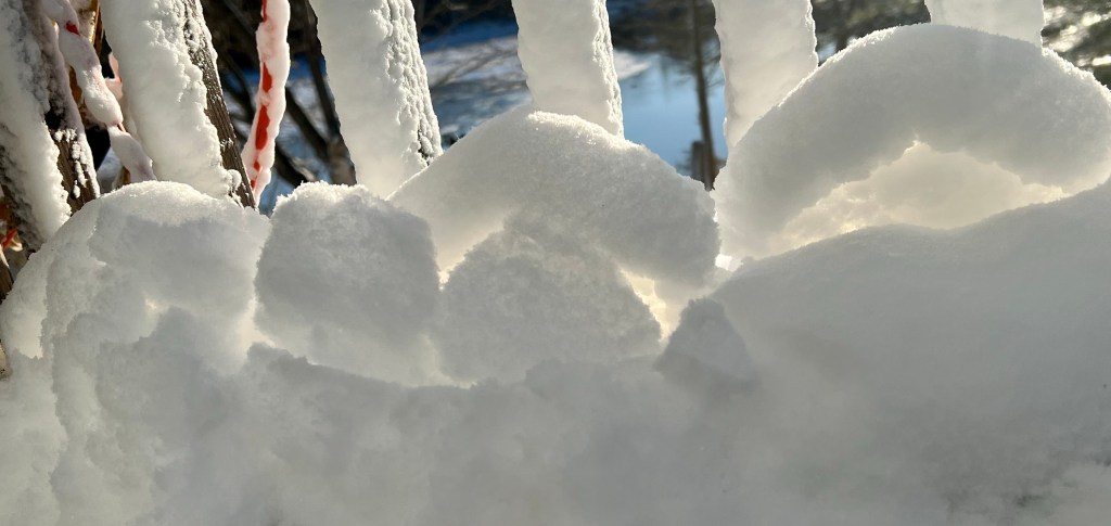 A winter wonderland greeted us this morning. I can’t remember the last time I was excited about so much snow… it means we can do a snowshoe session instead of a hike on Wednesday afternoon. Yeah!