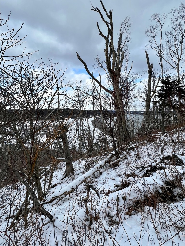 Trail info: The Partridge Island Eco Trail is a 3 km rugged and narrow path which at times can be steep. Trekking poles are recommended. In winter I strongly suggest to also wear crampons. The trail is too narrow for snowshoes.