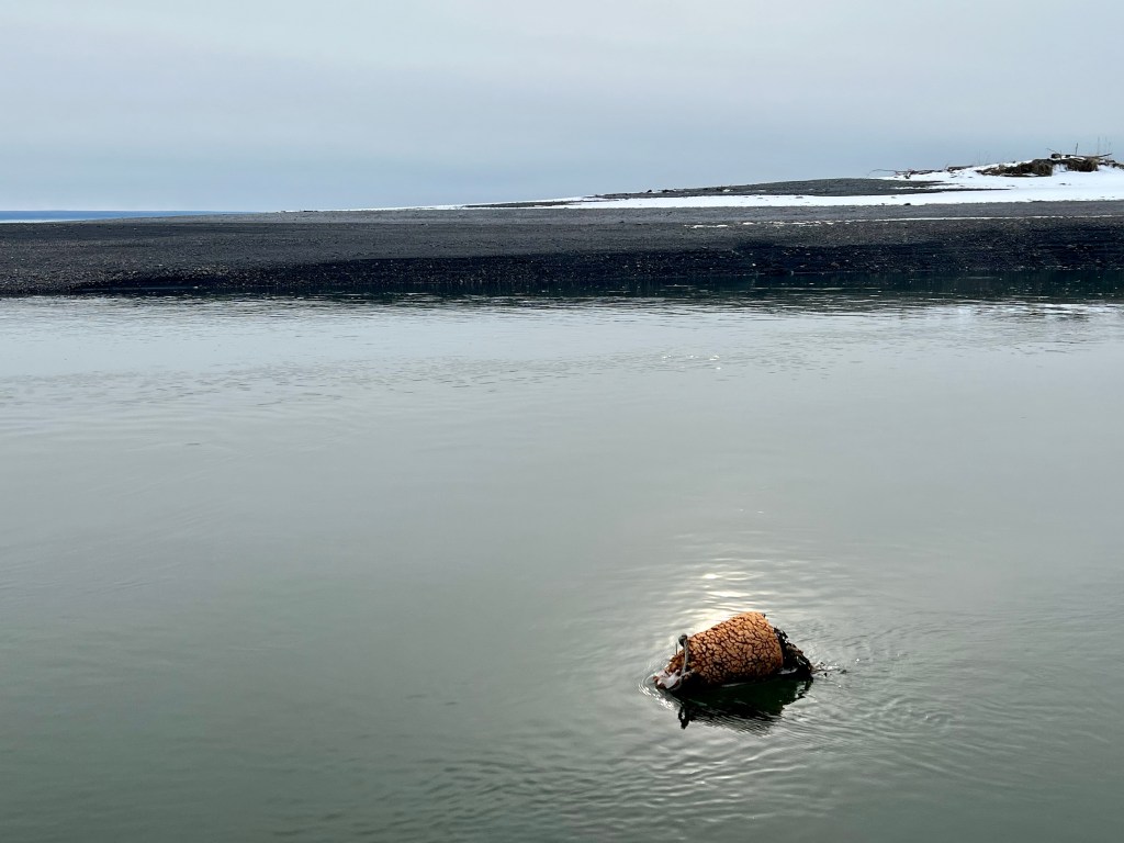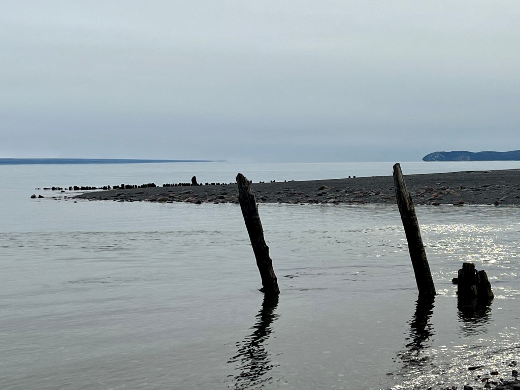 A quiet beach with mist rising, tiny snowflakes drifting from the sky and an unidentified object floating offshore… Cochrane Road Beach was deserted this afternoon as the tide was rising. It was perfect for decompressing and filling the well.