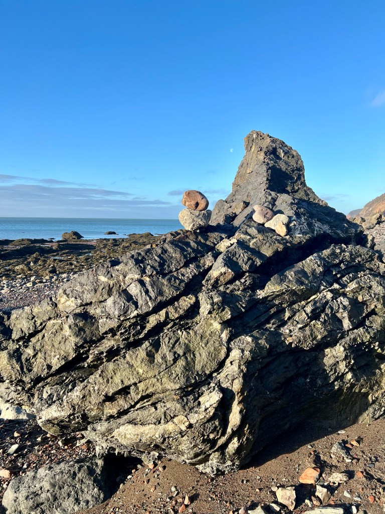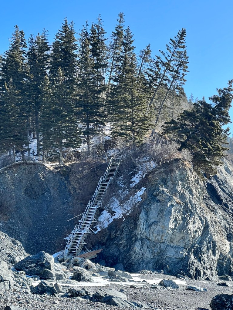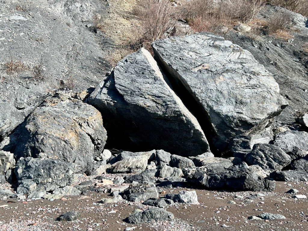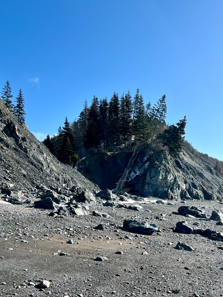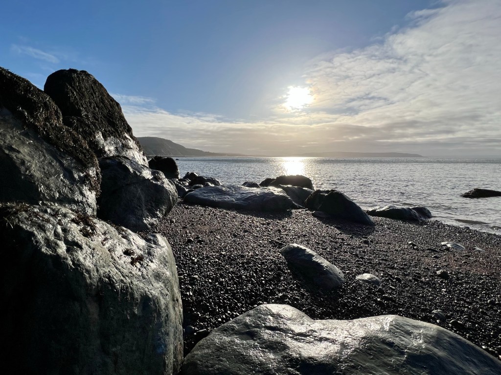 The plan was to hike along the beach from Red Rocks to Refugee Cove, depending on the cooperation of the tide. Well, let’s just say “The Mistress of the Bay”, as my friend calls the Bay of Fundy tide, was not in the mood for a waltz or Foxtrott today. We made good time to the first pinch point where we patiently waited but never got a chance to pass. Making safety our priority we reassessed our hiking plan and decided to proceed to Plan B.