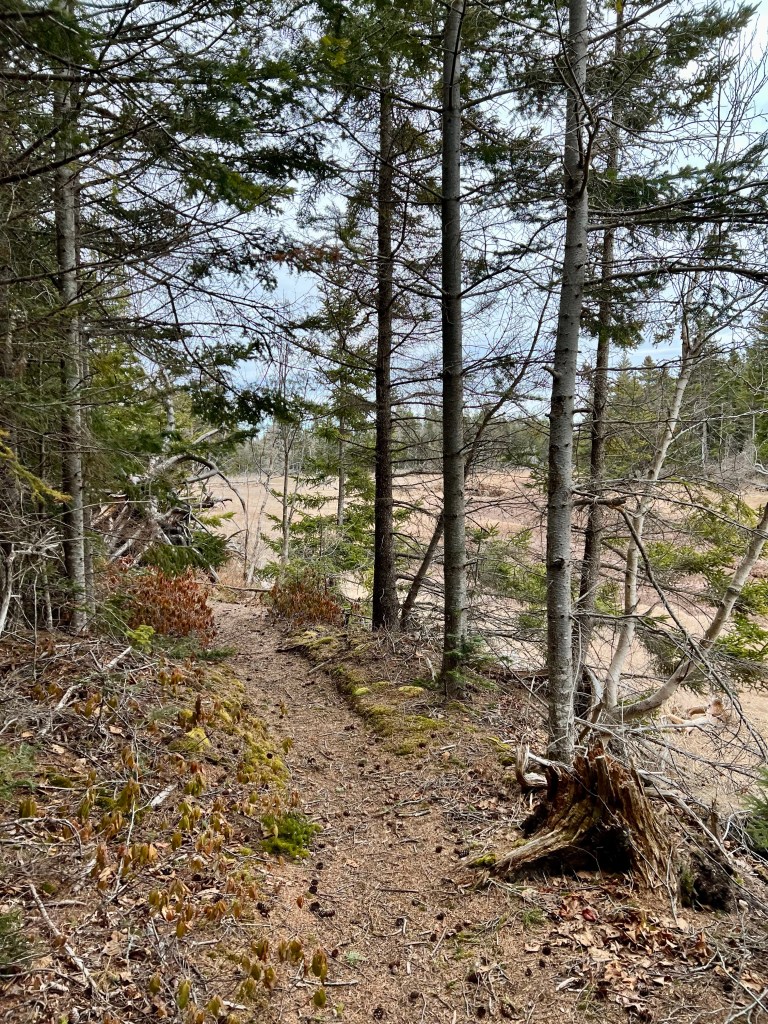 The terrain can be classified as “easy” with a few boggy sections, exposed roots and gentle inclines. Most of the wet sections offer planks to avoid getting feet muddy and wet. Overall the trail was well maintained with the Fiona damage well cleared and under control. Bring you trekking poles for better balance. Once the weather warms up I strongly recommend bringing and applying insect repellant. You will be happy that I included this reminder here.😊